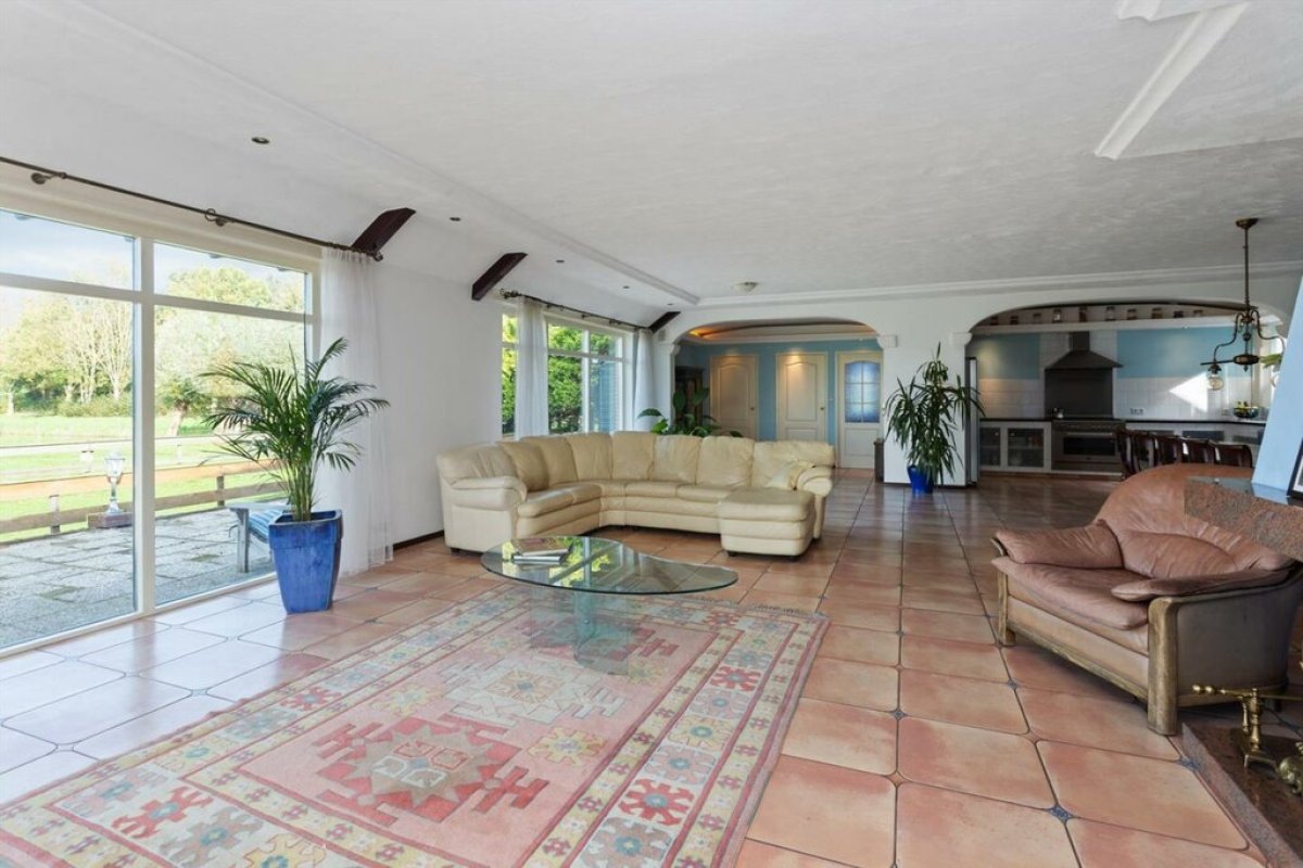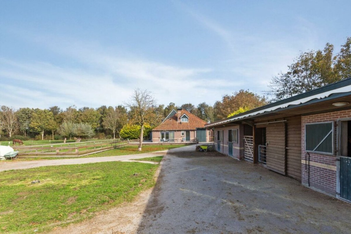 Tuin: Het landgoed is thans ingericht voor het houden van paarden. De paardenstal heeft 5 boxen en een hooischuur. Er zijn meerdere graasweides, een geitenweide en 2 paddocks waarvan een met zand. Grenzend aan de woonkamer ligt een groot terras met uitzicht op de weilanden. Aan de voorzijde van de woning is volop parkeerruimte voor minimaal 4 auto’s en de toegang tot de ruime garage van ca. 33m2. Langs de garage loopt een eigen weg naar de paardenstal en de weilanden. Het landgoed is bereikbaar via een betonnen brug met elektrisch bedienbaar hek.