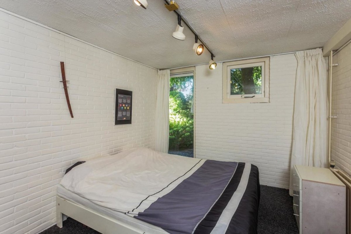 Begane grond: via de entree komt u in het voorportaal die toegang biedt tot de centrale hal. Vanuit de hal komt u een kamer aan de voorzijde van de woning die thans gebruikt wordt als kantoor. De hal biedt tevens toegang tot de zeer royale woonkamer. De woonkamer is licht door de vele raampartijen. Bijzonder in de woonkamer is de mooie, moderne gashaard en het uitzicht op de prachtige tuin die u via een deur kunt bereiken. Vanuit de woonkamer komt u uit in de halfopen keuken. De keuken biedt toegang tot de bijkeuken. Hier vindt u de aansluiting voor wasmachine en wasdroger. Vanuit de bijkeuken komt u in een slaapkamer met wastafel. Vanuit de hal kunt u ook naar de tuin en naar de garage die ruimte biedt voor een auto. Voor de garage vindt u een ruime carport.