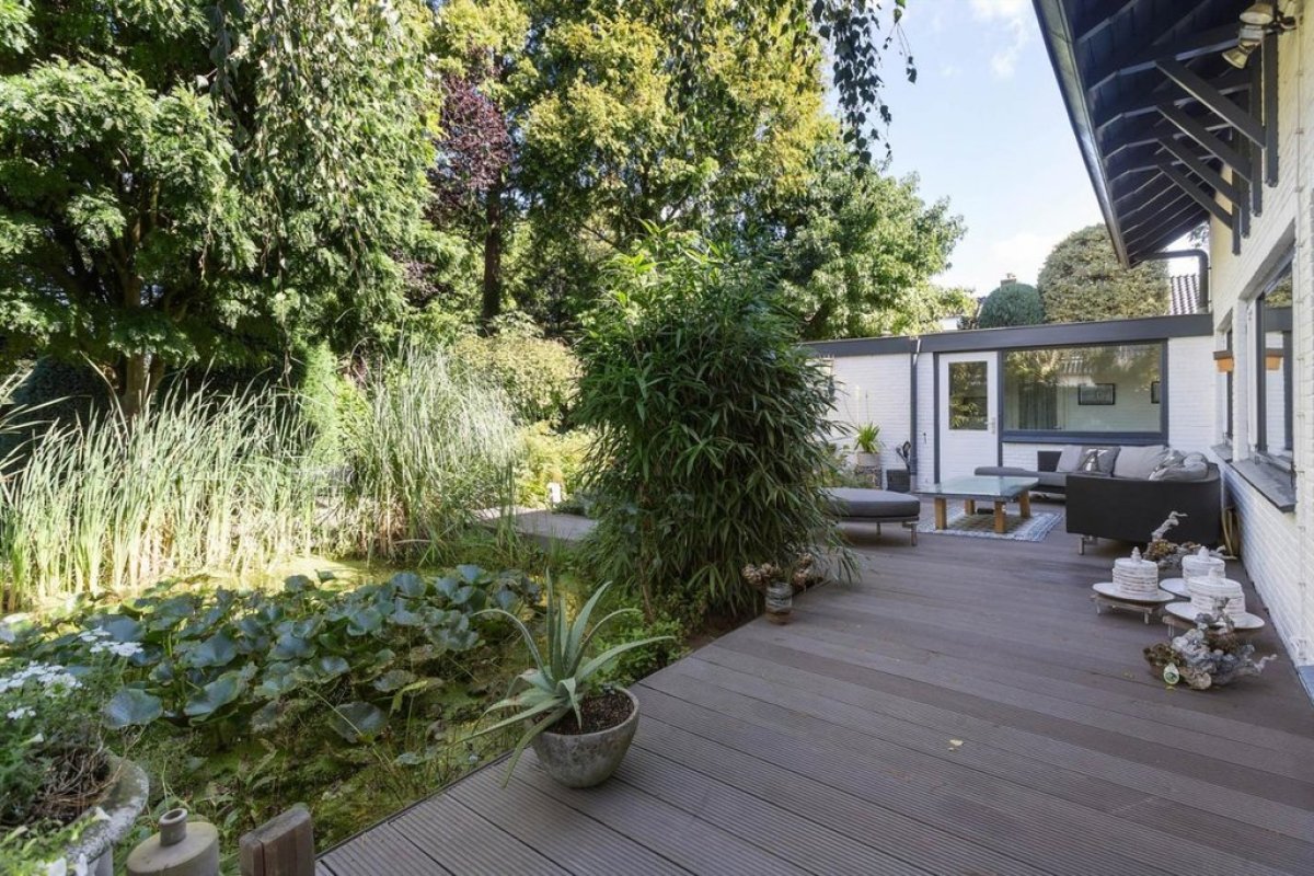 Tuin: Uniek aan deze woning is de zeer royale tuin rondom de woning. De prachtig aangelegde tuin is een oase van groen met gevarieerde beplanting, een vijver, een mooi houten terras en vele sfeervolle hoekjes waar het heerlijk vertoeven is. De voorzijde van de woning heeft een oprit met ruimte voor meerdere auto’s.