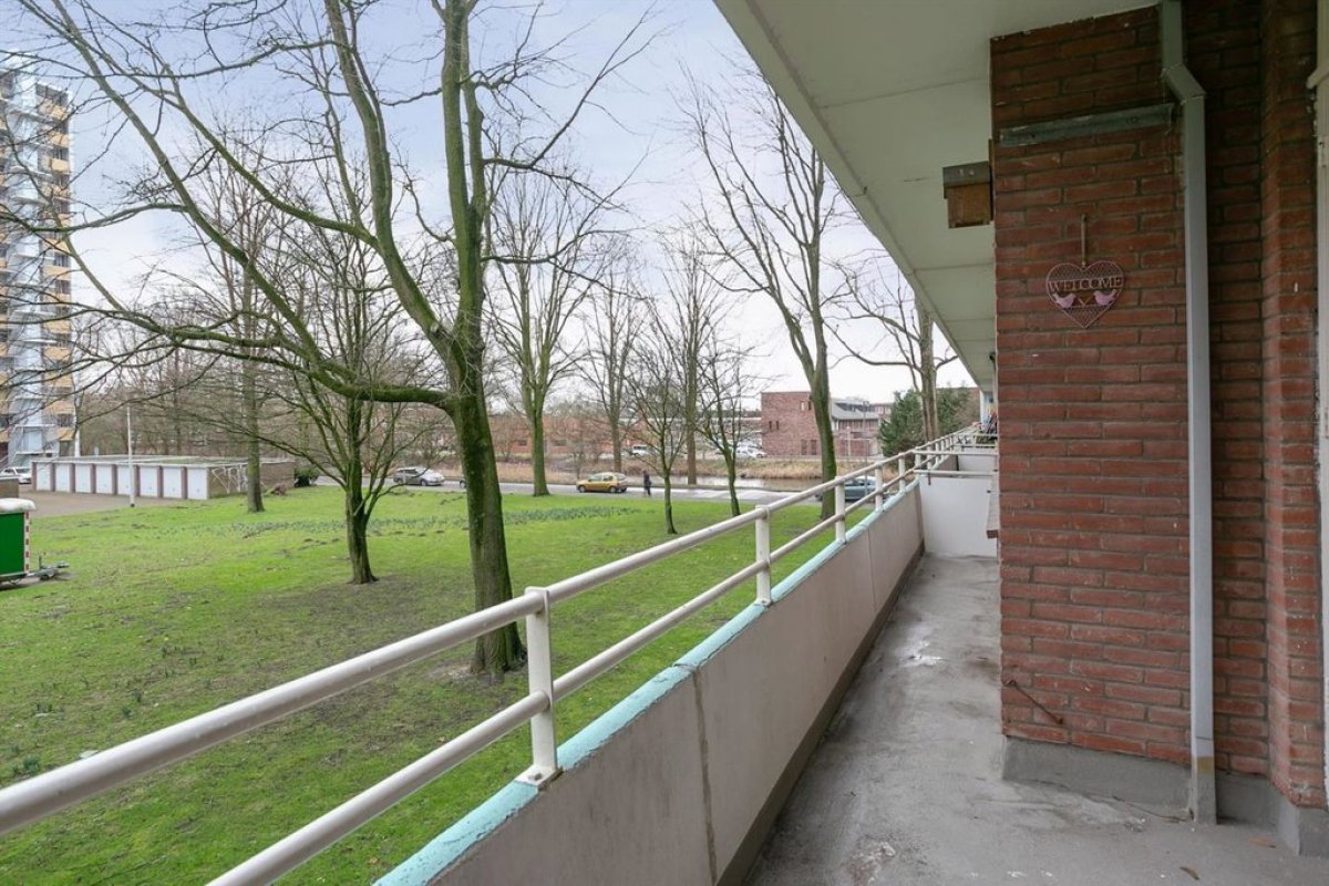 Via de gemeenschappelijk entree neemt u de trap of een van de twee liften naar de 1ste verdieping waar het appartement zich bevindt. De hal biedt toegang tot de woonkamer aan de achterzijde van de woning. De grote raampartijen zorgen voor veel lichtinval en geven een vrij uitzicht. Via de woonkamer komt u in de moderne woonkeuken ook aan de achterzijde. De woonkeuken (2015) heeft onder andere een 5-pitsgasfornuis met oven, een combimagnetron, een ruime koelkast, een vrieskast en een vaatwasmachine. Via een deur in de keuken heeft u toegang tot het zonnige balkon op het zuiden, over de gehele breedte van de woning. De hal biedt ook toegang tot de 3 (slaap)kamers aan de voorzijde en de badkamer met een douche-badcombinatie, een wastafelmeubel en een aansluiting voor de wasmachine. In de hal vindt u tevens een separaat toilet en de meterkast. Bijna de gehele woning is voorzien van een pvc-vloer.
