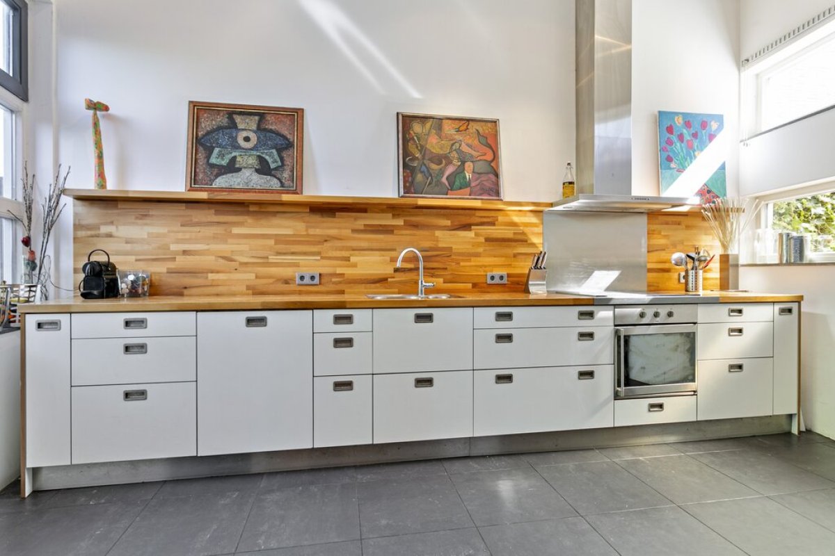 Volop woongenot in dit royale herenhuis van 212m2 aan de rand van Amsterdam. De hoekwoning, die bestaat uit 4 woonlagen, heeft een heerlijke tuin aan het water. U treft een zeer royale woonkeuken met lounge-hoek aan op de begane grond, een grote woonkamer op de eerste verdieping, 5 slaapkamers, 2 badkamers, een dakterras, een prachtige brede en zonnige tuin met overkapt terras en voor de deur op eigen terrein parkeerruimte voor minimaal 2 auto’s. Het unieke hoge plafond in de woonkeuken en de vele ramen zorgen voor een heerlijk lichte leefomgeving.
