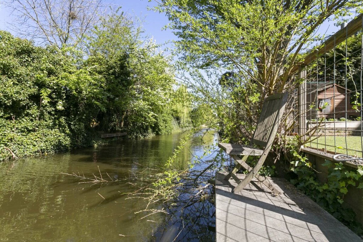 Tuin: De brede, zonnige achtertuin is een groene oase. De tuin ligt op het westen waardoor u bijna de gehele dag kunt genieten van de zon. Het terras is sfeervol en deels overdekt. De tuin bestaat uit 2 niveaus zodat u verschillende zithoeken kunt creëren. Vanaf de lagergelegen steiger kijkt u heerlijk uit over het water en het groen. De tuin aan de voorzijde is betegeld en biedt parkeerruimte voor minimaal 2 auto’s.