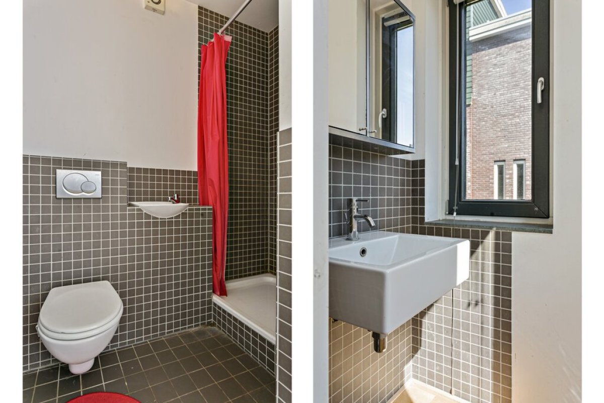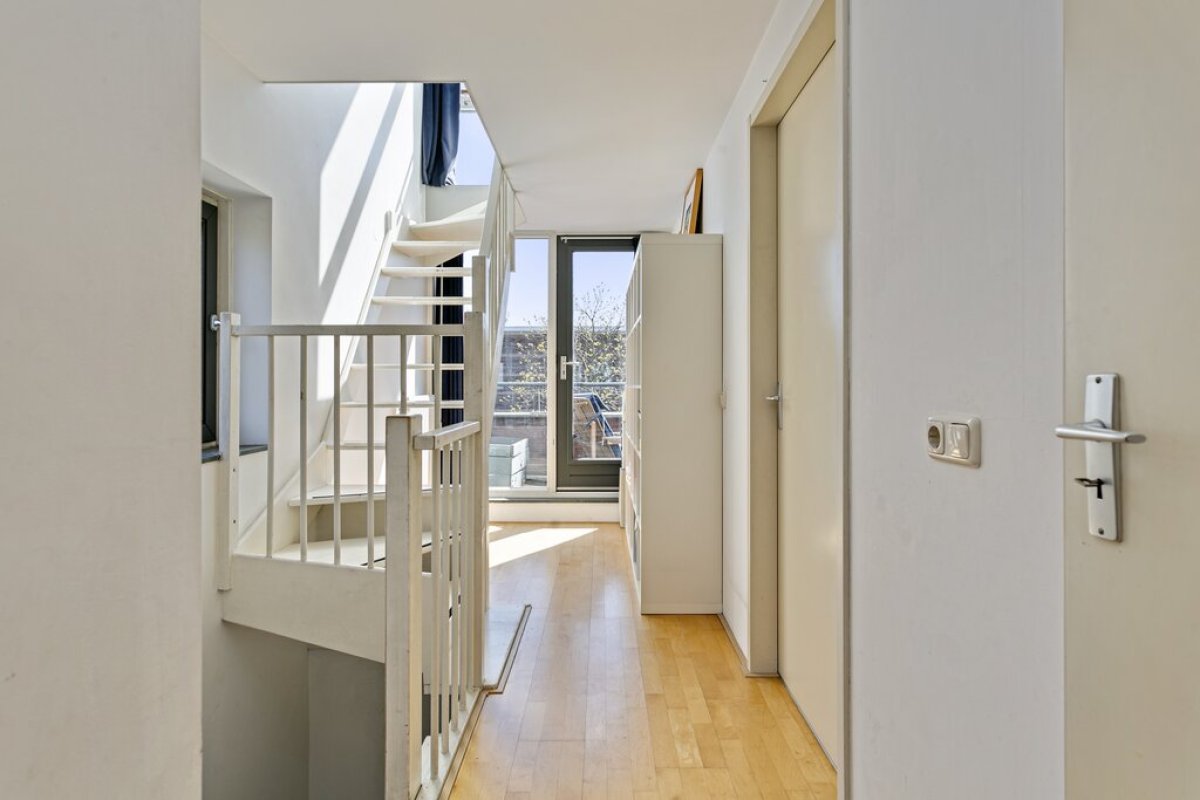 2de verdieping: Hier bevinden zich 2 ruime slaapkamers, de tweede badkamer met een ligbad, een inloopdouche en een wastafel, een separaat toilet en een ruime berging met de cv-ketel en aansluiting voor de wasmachine. De slaapkamer aan de voorkant heeft een dakterras. Dit terras is tevens bereikbaar via een deur op de overloop.