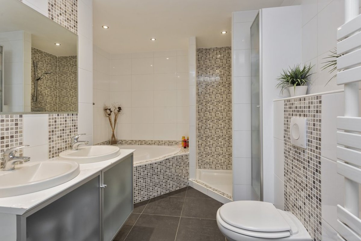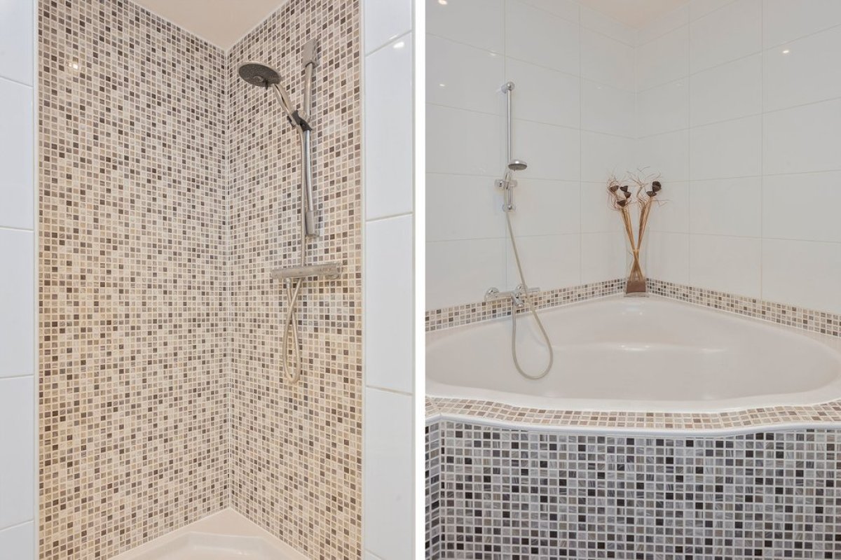 1e verdieping: via de trap komt u op de overloop van de eerste verdieping. Hier vindt u 2 slaapkamers en de ruime badkamer. De grootste slaapkamer aan de achterzijde heeft een inbouwkast. Het is mogelijk om deze kamer te splitsen in 2 kamers. De slaapkamer aan de voorzijde heeft een Frans balkon. Naast deze slaapkamer vindt u de moderne badkamer met een hoekbad, een inloopdouche, een dubbele wastafel en het tweede toilet. U vindt hier tevens een grote berging met de cv-ketel en de aansluiting voor de wasmachine en droger.