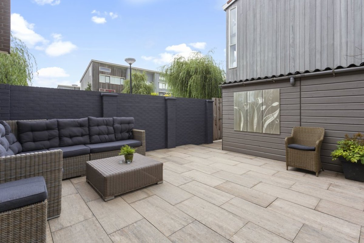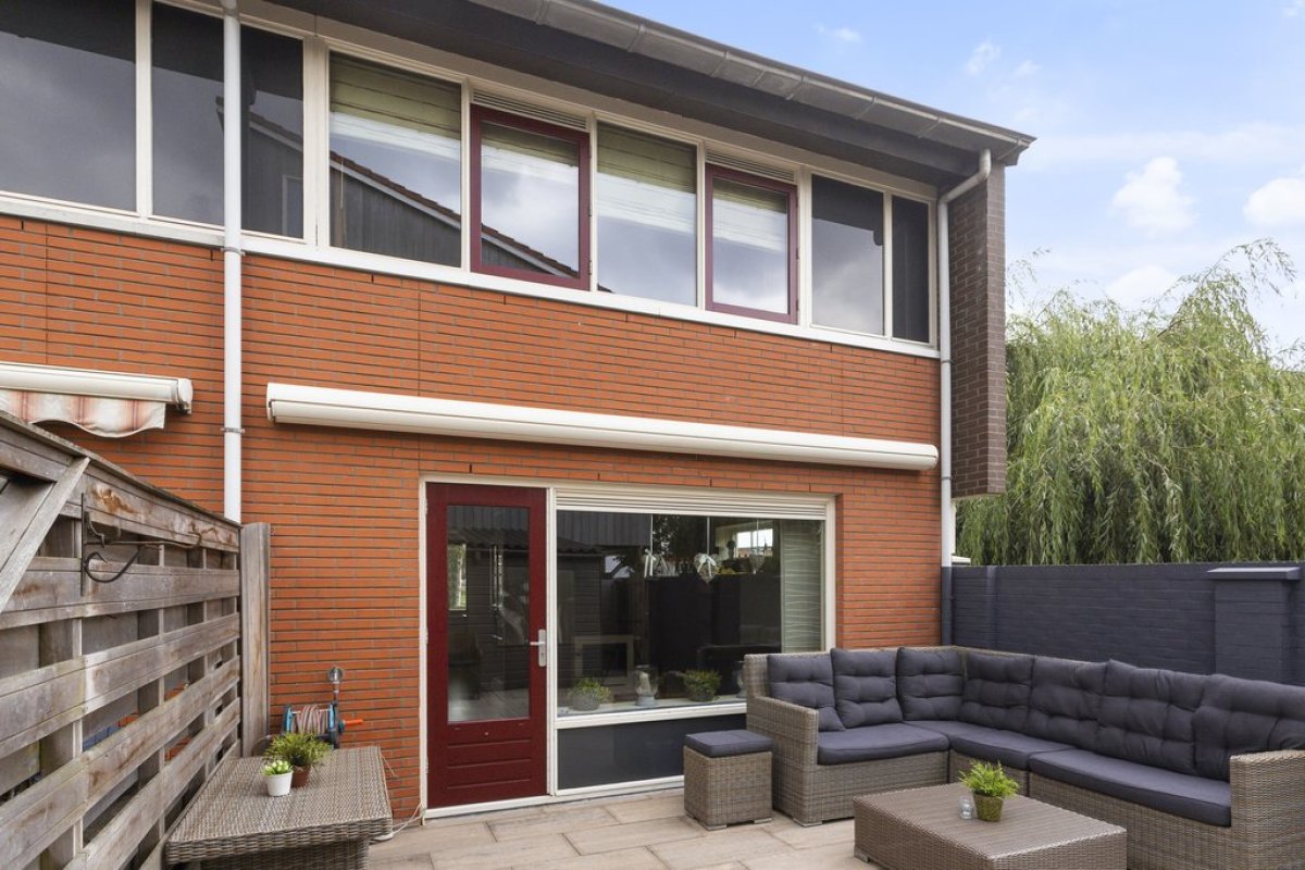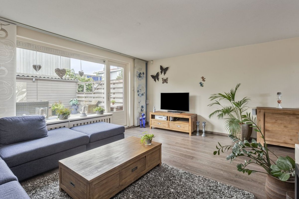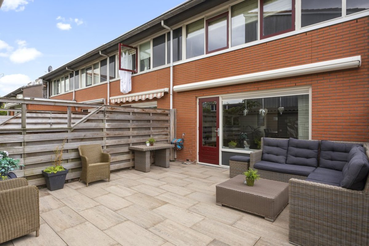 Tuin: de woning heeft een sfeervolle, zonnige achtertuin. De tuin is volledig betegeld, heeft een houten berging en achterom. Tevens is er een zonnescherm over bijna de gehele breedte van de tuin.
