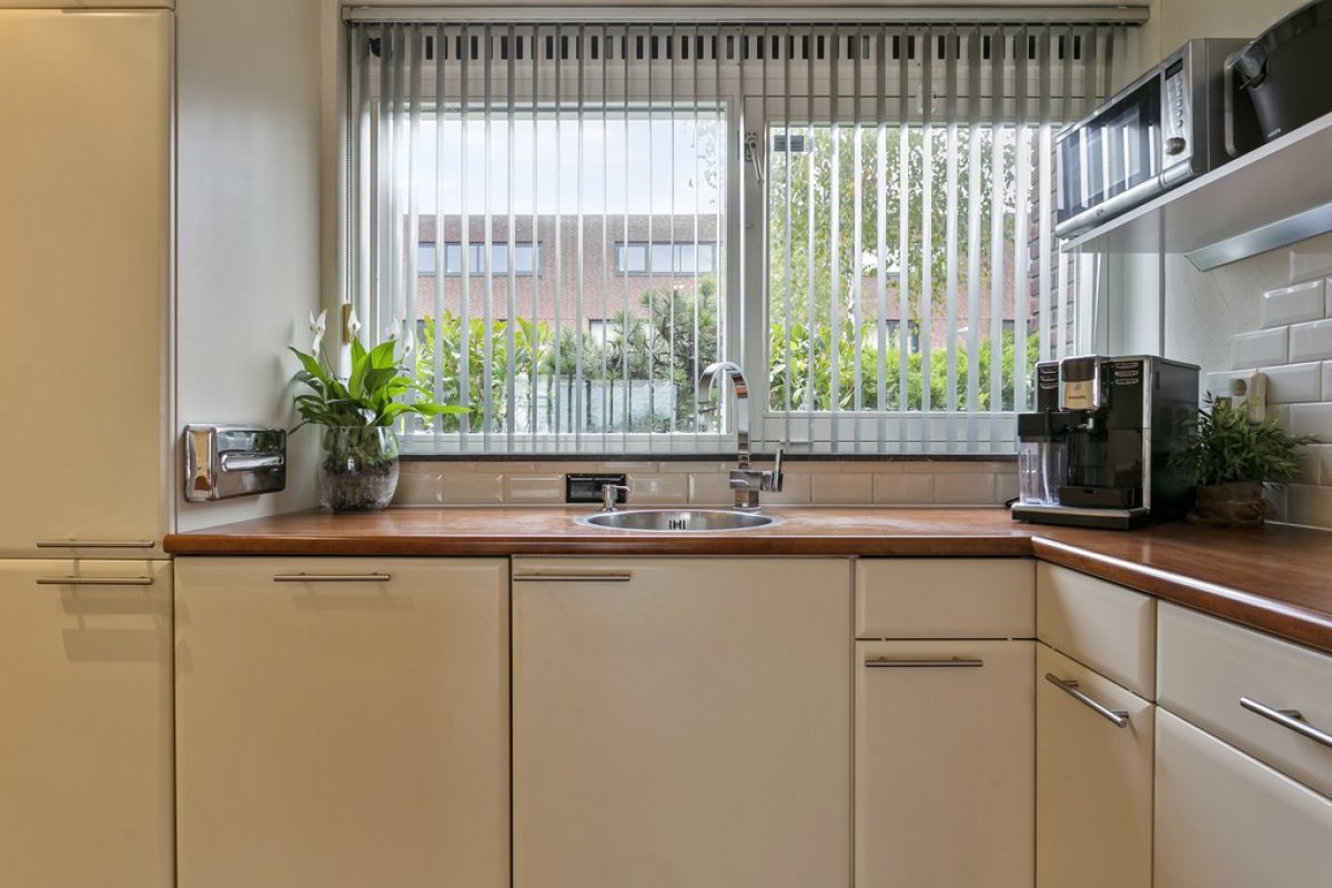 Begane grond: via de entree komt u in de ruime hal met toiletruimte en de meterkast. De hal biedt toegang tot de royale, lichte woonkamer met open keuken. Deze gehele ruimte is voorzien van een massief houten vloer. Een grote schuifpui verbindt de woonkamer met de tuin. De keuken aan de voorzijde kijkt uit over de brede straat en heeft een kookschiereiland met een 4-pits gaskookplaat en een oven, een koelvriescombinatie en een vaatwasser.