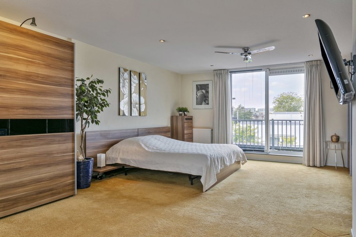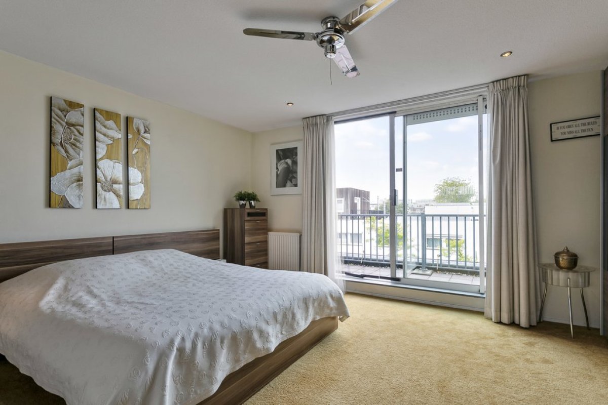 2e verdieping: via de vaste trap bereikt u de royale (slaap)kamer. Deze kamer heeft veel lichtinval door de schuifpui naar het dakterras en biedt vele mogelijkheden.