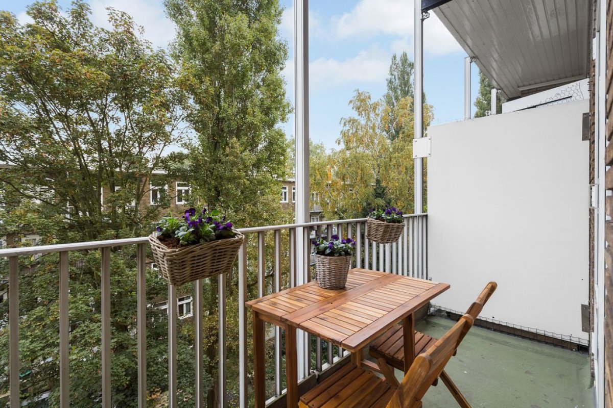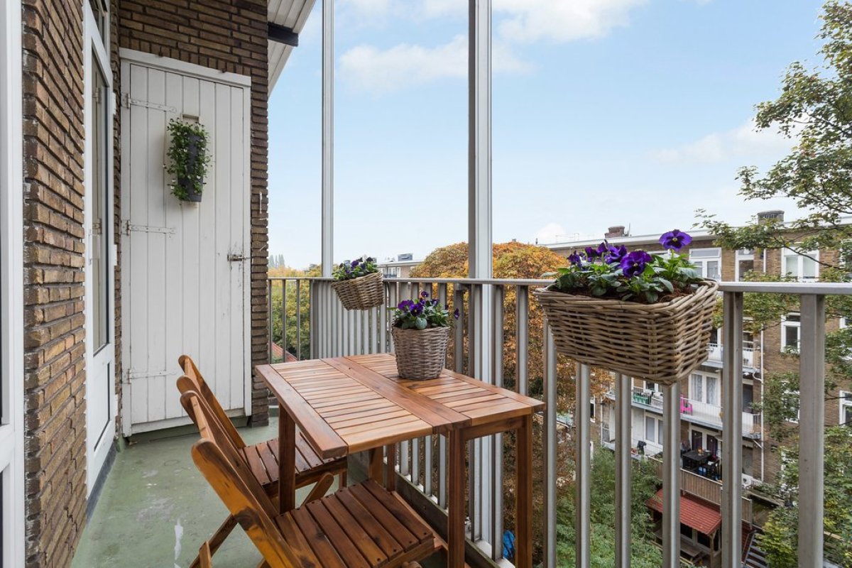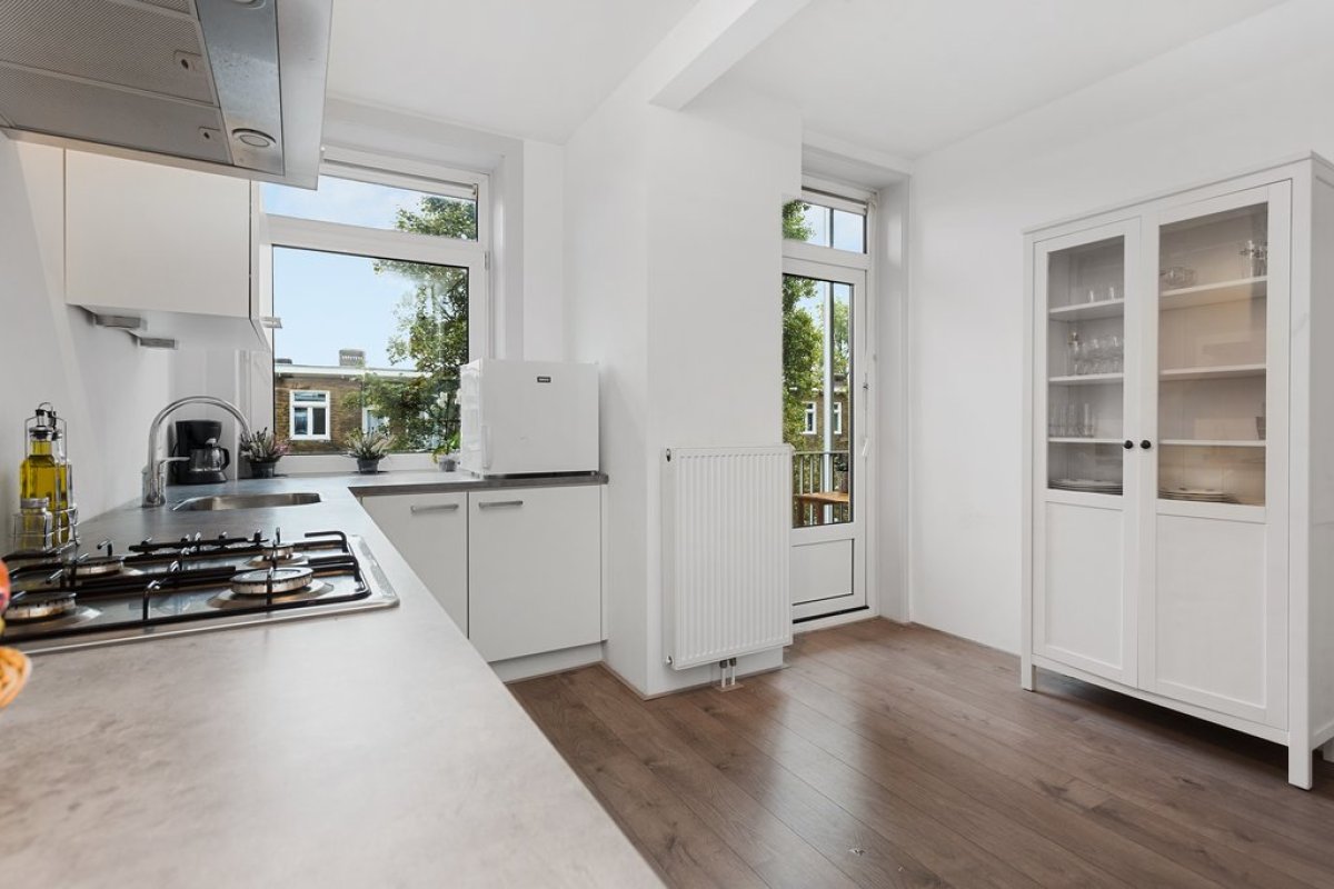 This spacious and bright 2/3-room apartment of 56m2 is located on the 3rd (upper) floor in a quiet street in the ‘Bos en Lommer’ area. It offers a bright living room with side room, a large kitchen, a bathroom, a bedroom, a separate toilet, 2 sunny balconies and an extra storage on the ground floor. The area, also called BoLo, has gained in popularity and offers a diversity of shops and establishments. Everything one needs is just steps away. The center of Amsterdam is at 10 minutes cycling and by car one reaches Ring A10 in just 5 minutes. Public transport is nearby: trams 7, 12 and 19 and busses 15, 21, 247, 282 and 302 stop off around the corner. Metro (50 and 51) and train (Sloterdijk station) are quickly accessible by bike or tram.