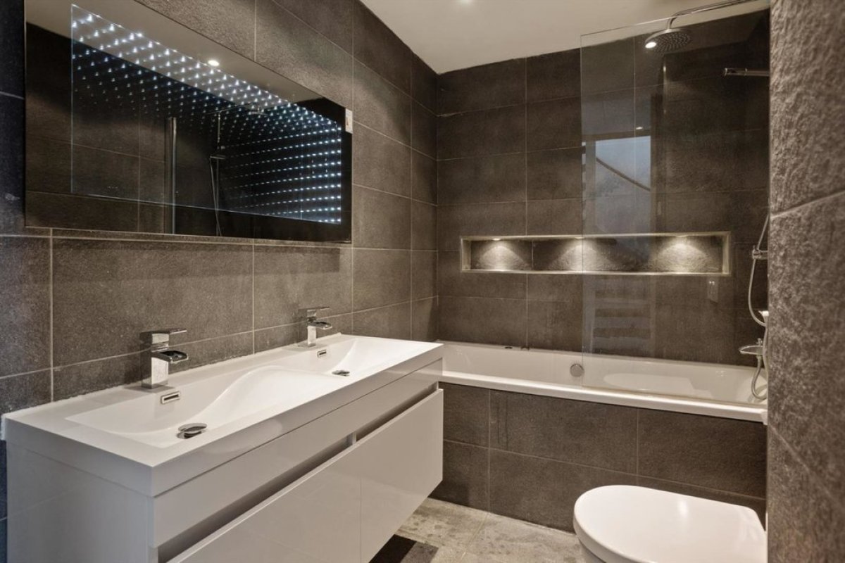 1e verdieping: via de trap komt u op de overloop van de eerste verdieping. Hier bevinden zich 3 ruime slaapkamers waarvan één zeer ruim. Ook vindt u hier de moderne badkamer met een douche-badcombinatie, een toilet en een wastafelmeubel met 2 wastafels. De badkamer heeft vloerverwarming. Op bijna de gehele verdieping ligt een laminaat vloer.