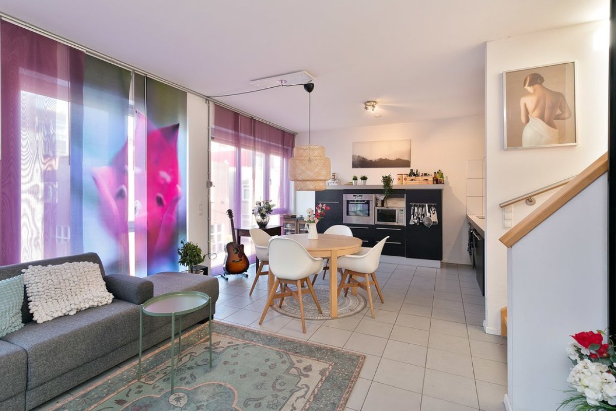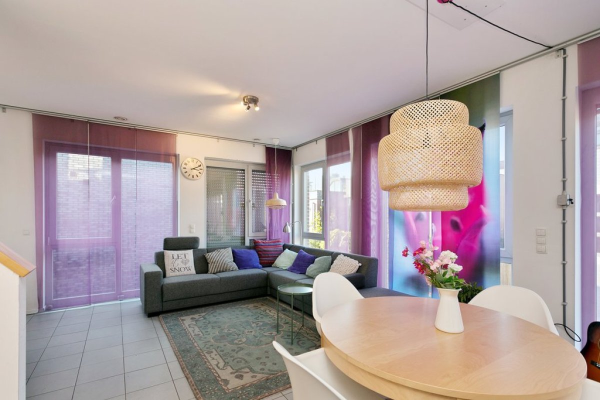 Modern detached house of 140m2 with a spacious living with open kitchen, accommodated with built-in appliances, 4 bedrooms, 2 bathrooms, a garden and a large roof terrace and an indoors garage of 16m2 at IJburg. Since the house has 2 front doors, it offers good opportunities for a home office or for double family living. Next to the house there is parking space for 2 to 3 cars. Quick access to motorways (A10, A1) and good connection with public transport to city center (tram 26) and Amsterdam Zuid Oost (bus 66).