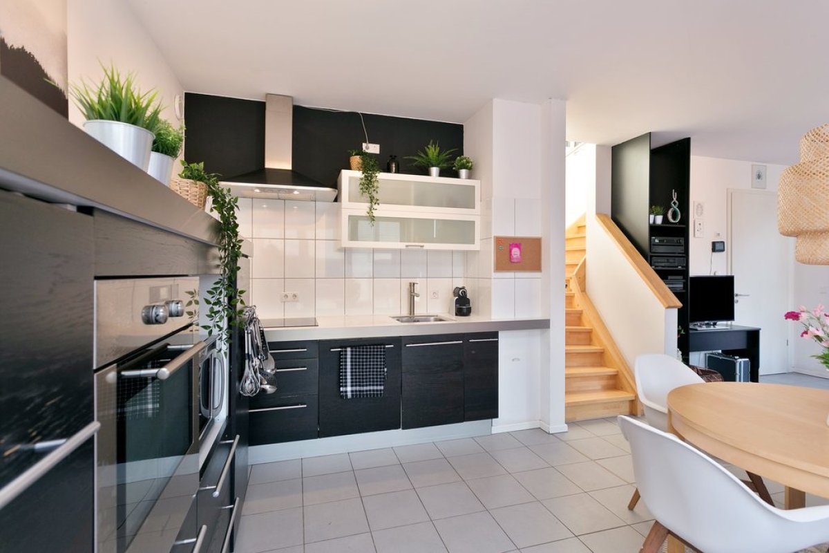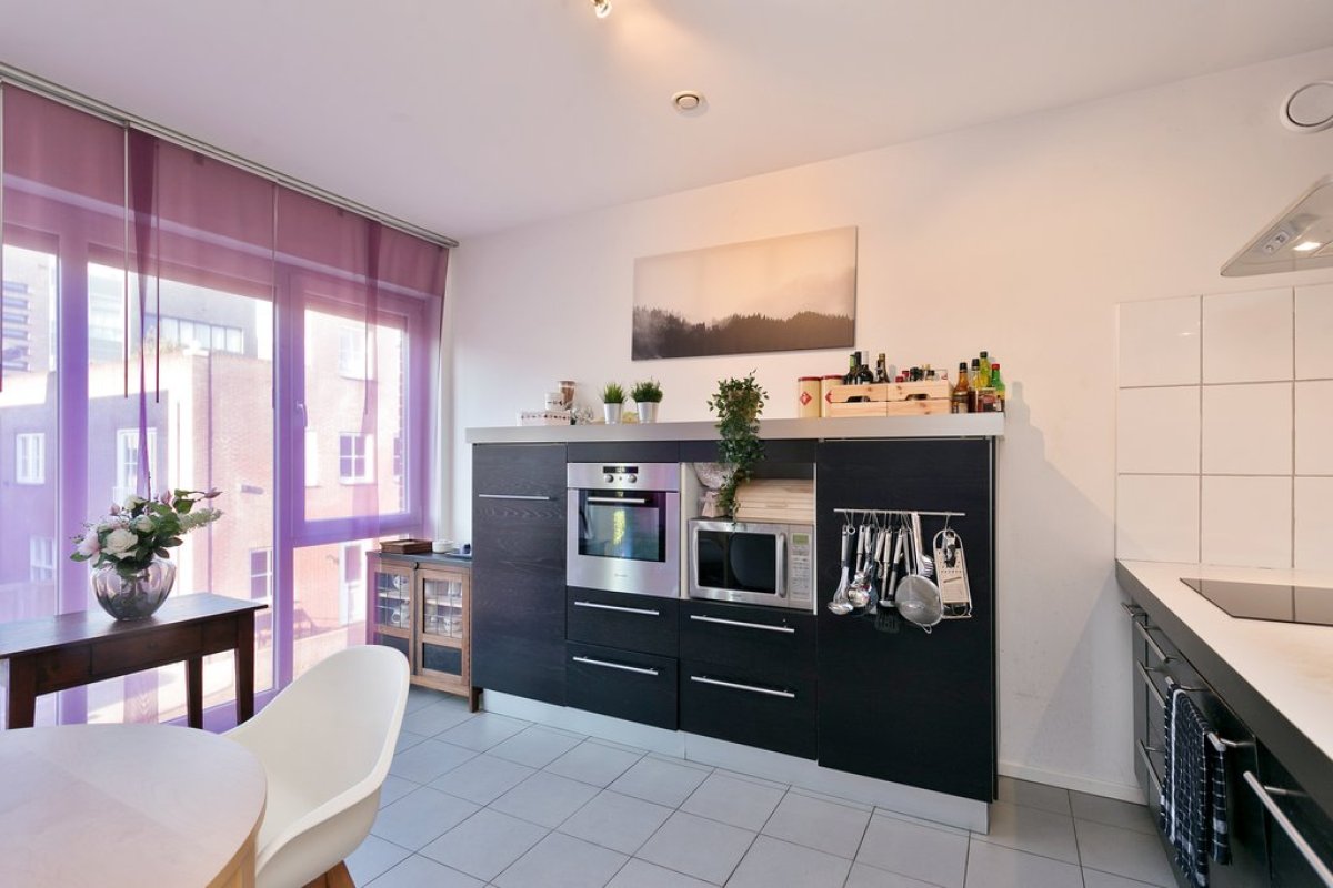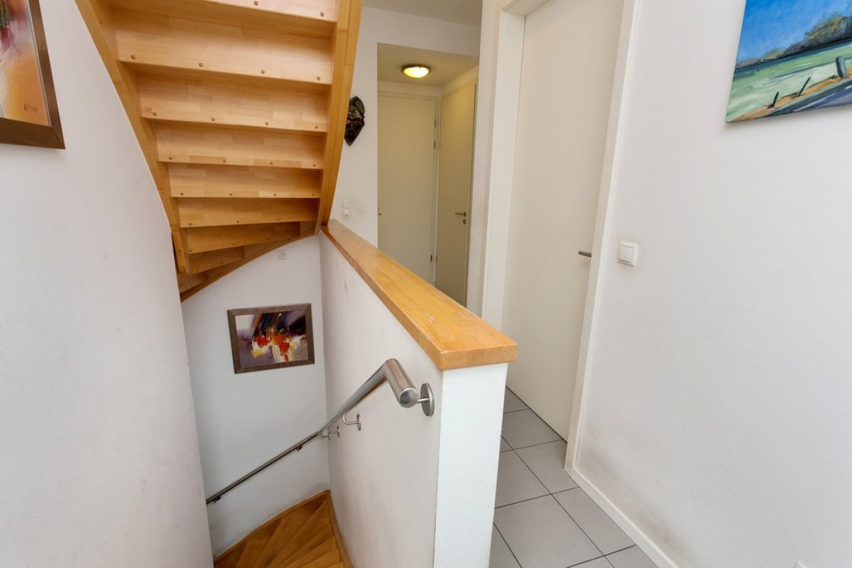1e verdieping: middels de hardhouten trap komt u in de ruime woonkamer met open keuken. Deze kamer biedt genoeg ruimte voor een grote eettafel en een ruime zithoek. De luxe open keuken is voorzien van alle moderne inbouwapparatuur waaronder een oven, een magnetron, een inductie kookplaat, een koelkast, een vriezer en een vaatwasser. Verder vindt u op deze verdieping nog 2 slaapkamers, een badkamer met een ruime inloopdouche, een wastafel en een ligbad en een separaat toilet. Ook is er een kast waar de wasmachine geplaatst is. De gehele verdieping is voorzien van vloerverwarming.