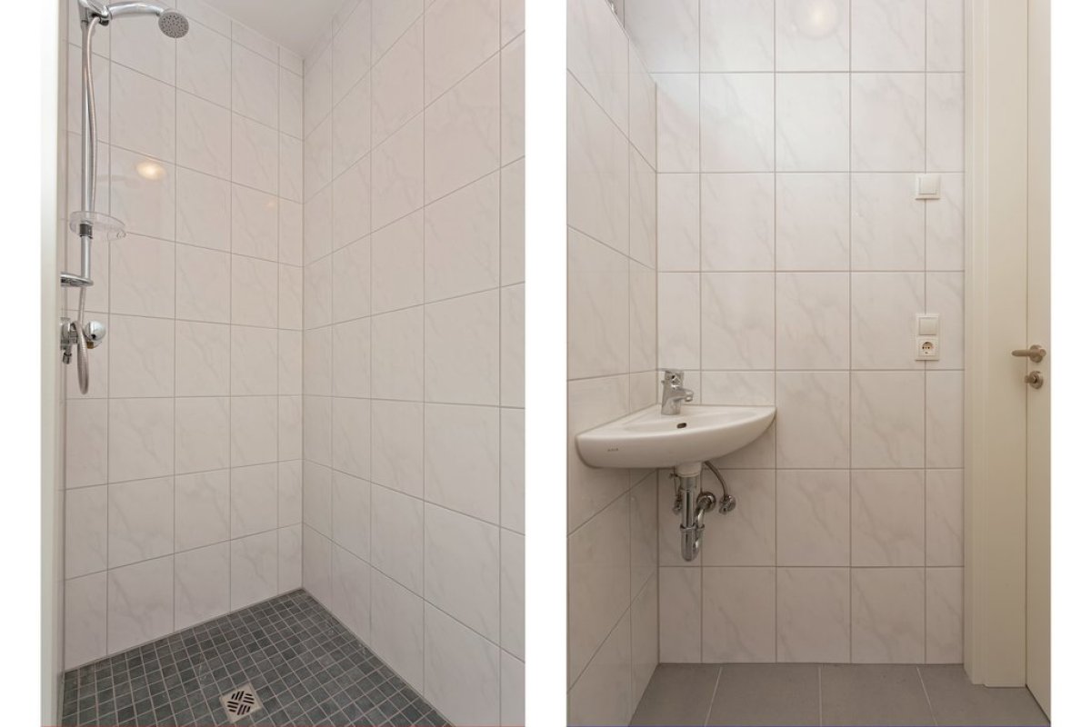 Begane grond: de woonruimte op de begane grond heeft een eigen entree aan de zijkant van de woning maar is ook via de hal van de entree aan de voorkant bereikbaar. Hier vindt u 2 kamers en een garage. De grootste kamer heeft aansluiting voor koud en warm water met afvoer en biedt dus de mogelijkheid om een keuken te plaatsen. Ook is het eenvoudig om de garage bij deze kamer te betrekken. In de hal vindt u tevens een badkamer met wastafel en een inloopdouche en een separaat toilet. Via de hal maar ook de grote slaapkamer biedt een deur toegang tot de achtertuin. De vloer op de begane grond is gedeeltelijk voorzien van vloerverwarming.