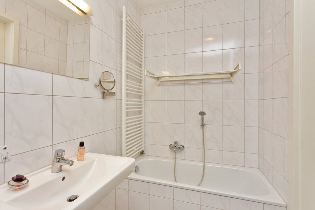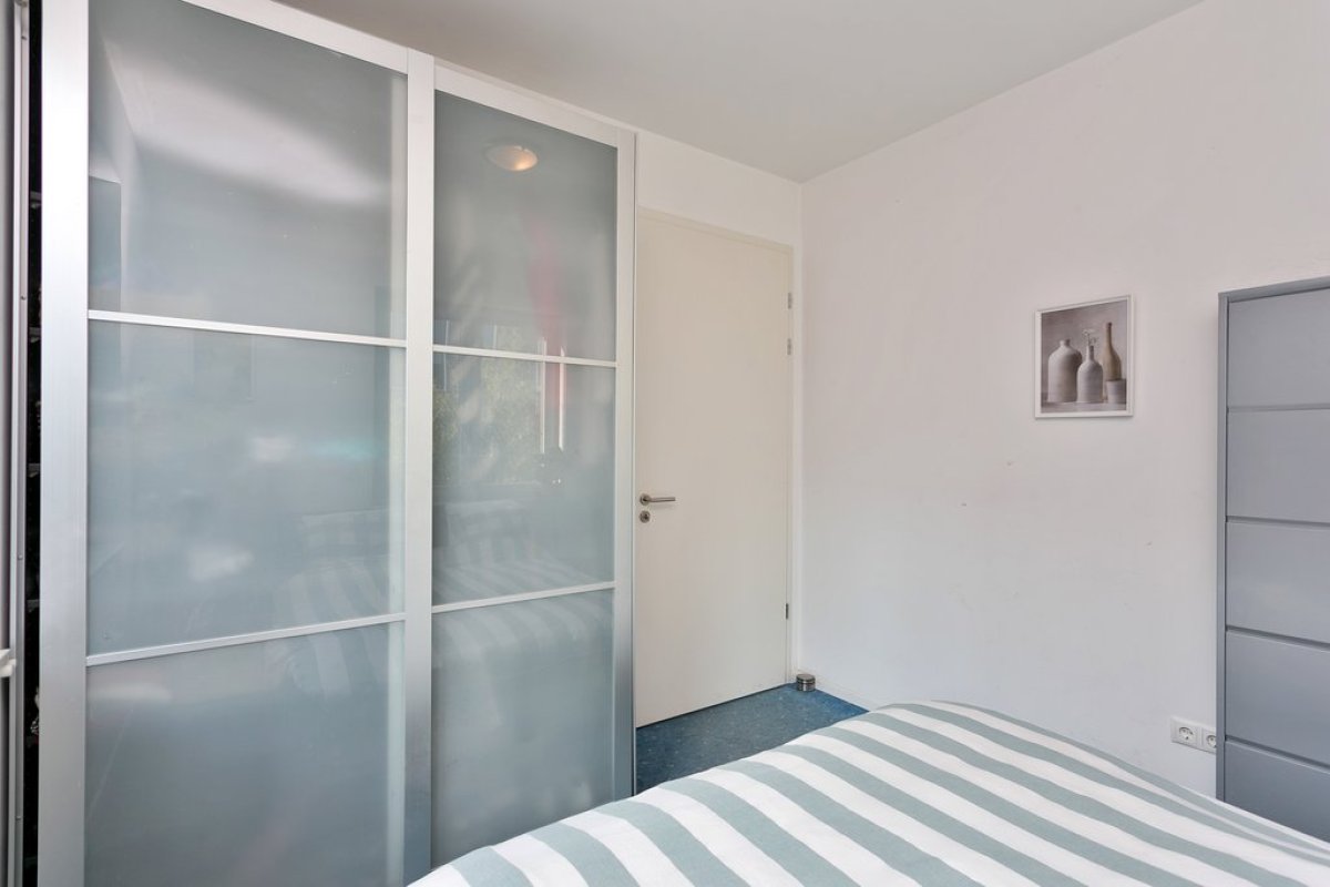 1e verdieping: middels de hardhouten trap komt u in de ruime woonkamer met open keuken. Deze kamer biedt genoeg ruimte voor een grote eettafel en een royale zithoek. De luxe open keuken is voorzien van alle moderne inbouwapparatuur waaronder een oven, een magnetron, een inductie kookplaat, een koelkast, een vriezer en een vaatwasser. Verder vindt u op deze verdieping nog 2 slaapkamers, een badkamer met een ruime inloopdouche, een wastafel en een ligbad en een separaat toilet. Ook is er een kast waar de wasmachine geplaatst is. De gehele verdieping is voorzien van vloerverwarming.