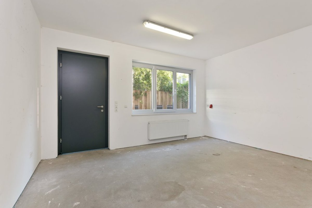 Begane grond: de woonruimte op de begane grond heeft een eigen entree aan de zijkant van de woning maar is ook via de hal van de entree aan de voorkant bereikbaar. Hier vindt u 2 kamers en een garage. De grootste kamer heeft aansluiting voor koud en warm water met afvoer en biedt dus de mogelijkheid om een keuken te plaatsen. Ook is het eenvoudig om de garage bij deze kamer te betrekken. In de hal vindt u tevens een badkamer met wastafel en een inloopdouche en een separaat toilet. Via de hal maar ook de grote slaapkamer biedt een deur toegang tot de achtertuin. De vloer op de begane grond is gedeeltelijk voorzien van vloerverwarming.
