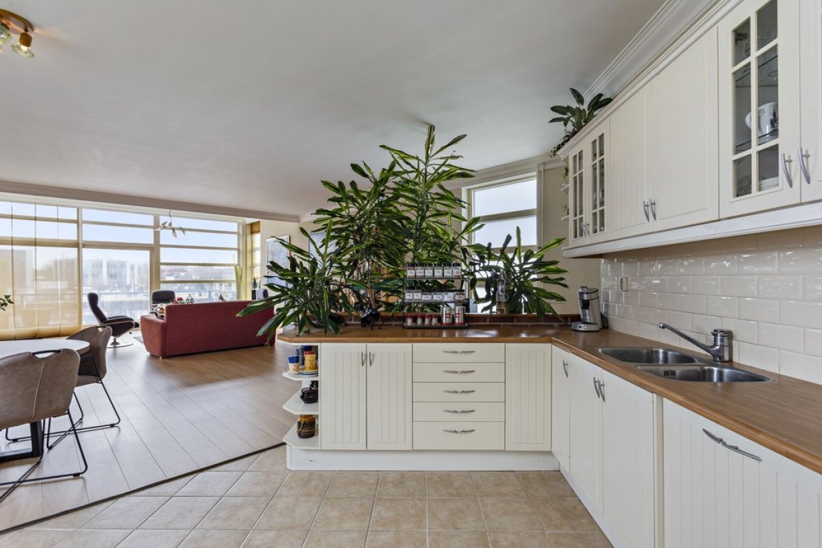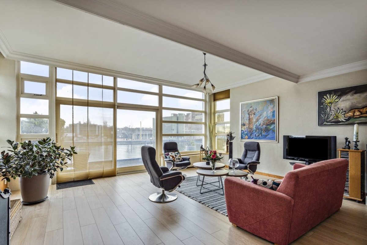 This unique apartment with stunning view over river Zaan has a large, light living room with an open kitchen, a fire place, two bedrooms and a bathroom with sauna and a large terrace on riverside. The apartment is situated in the city center of Zaandam, near Amsterdam. Yet it offers quick access to the motorway (A7, A8). The bus to Zaandam station and Assendelft station stops around the corner. Zaandam station is only a few minutes by bike. At walking distance, one finds many small and larger shops for all your daily groceries, trendy lunch bars and small specialty shops.