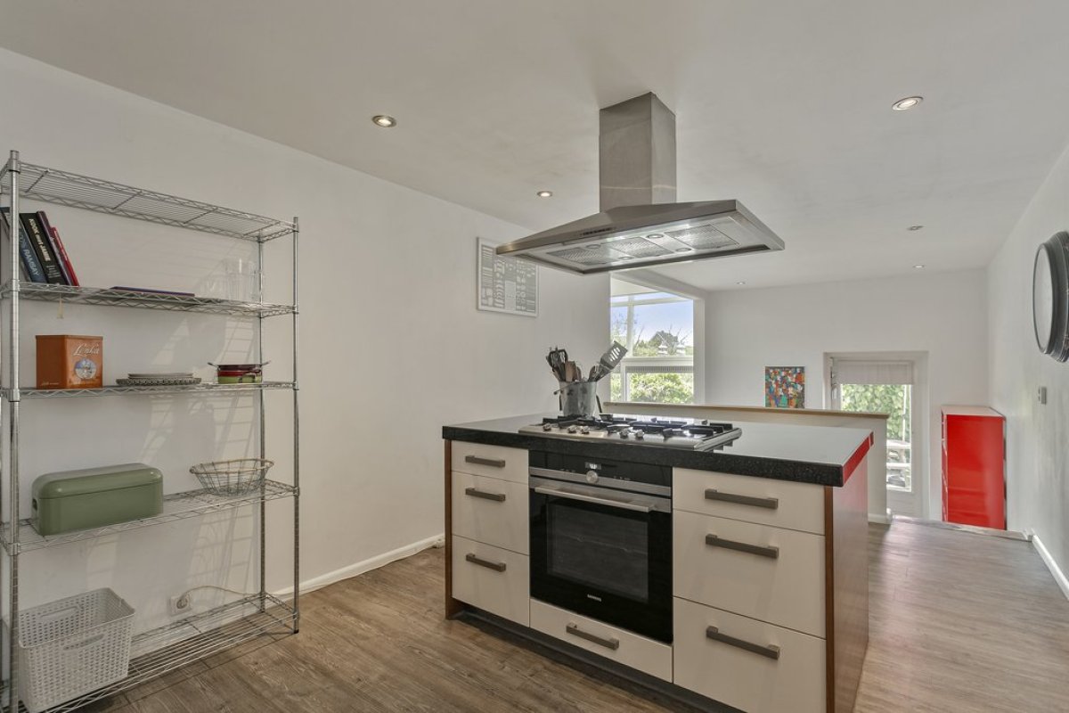 Begane grond: via de overdekte entree komt u in de ruime en lichte hal. Deze hal biedt toegang tot een kamer/kantoor, een berging met aansluiting voor de wasmachine, een toilet, de meterkast en de royale woonkeuken met living. Een wenteltrap verbindt de living direct met de woonkamer op de eerste verdieping. De living heeft een grote schuifpui naar de zonnige, brede tuin die grenst aan de ecostrook. De keuken met kookeiland is geplaatst op een verhoogd gedeelte waar voorheen de garage was. Vanuit het kookgedeelte kijkt u uit op het eetgedeelte, de living en de tuin. De woonkeuken en hal zijn voorzien van een pvc-vloer met vloerverwarming.
