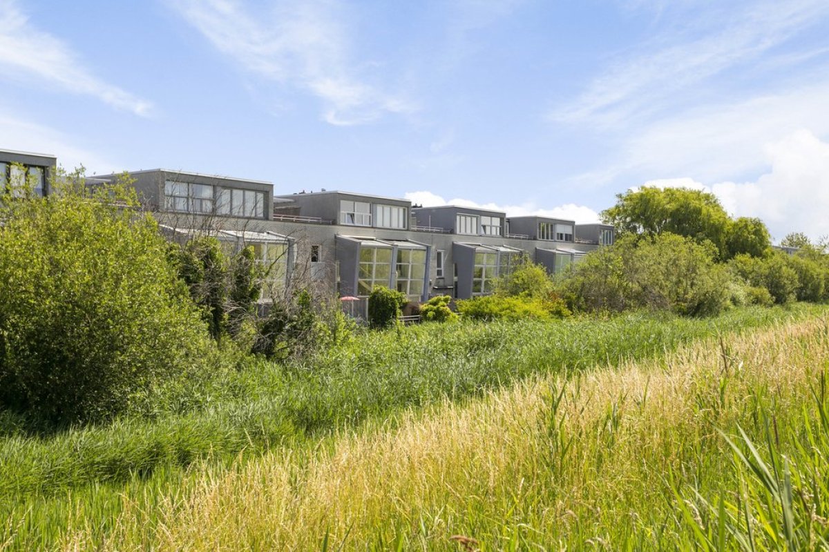 Tuin: De brede, zonnige achtertuin ligt op het zuidwesten waardoor u bijna de gehele dag kunt genieten van de zon. Vanaf het terras kijkt u heerlijk uit over het water en het groen van de aangrenzende ecostrook. De tuin aan de voorzijde is betegeld en biedt parkeerruimte voor 2 auto’s.