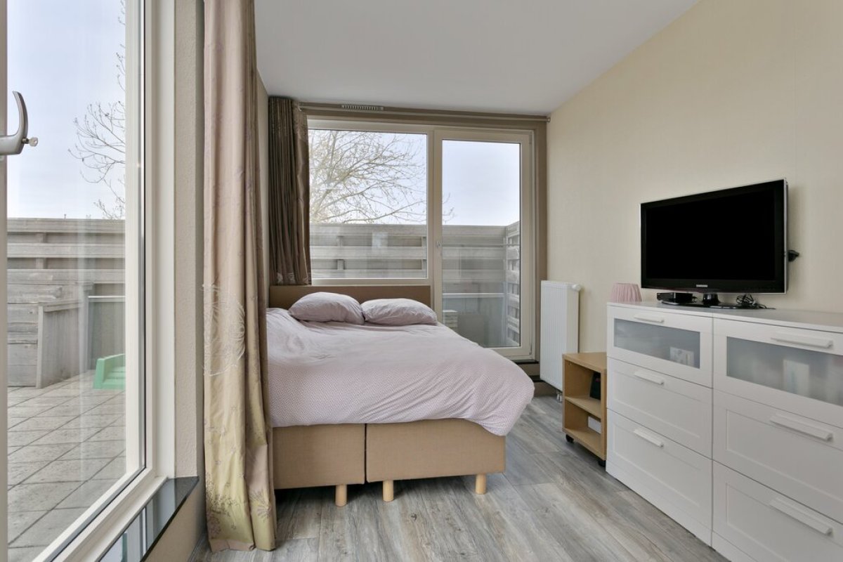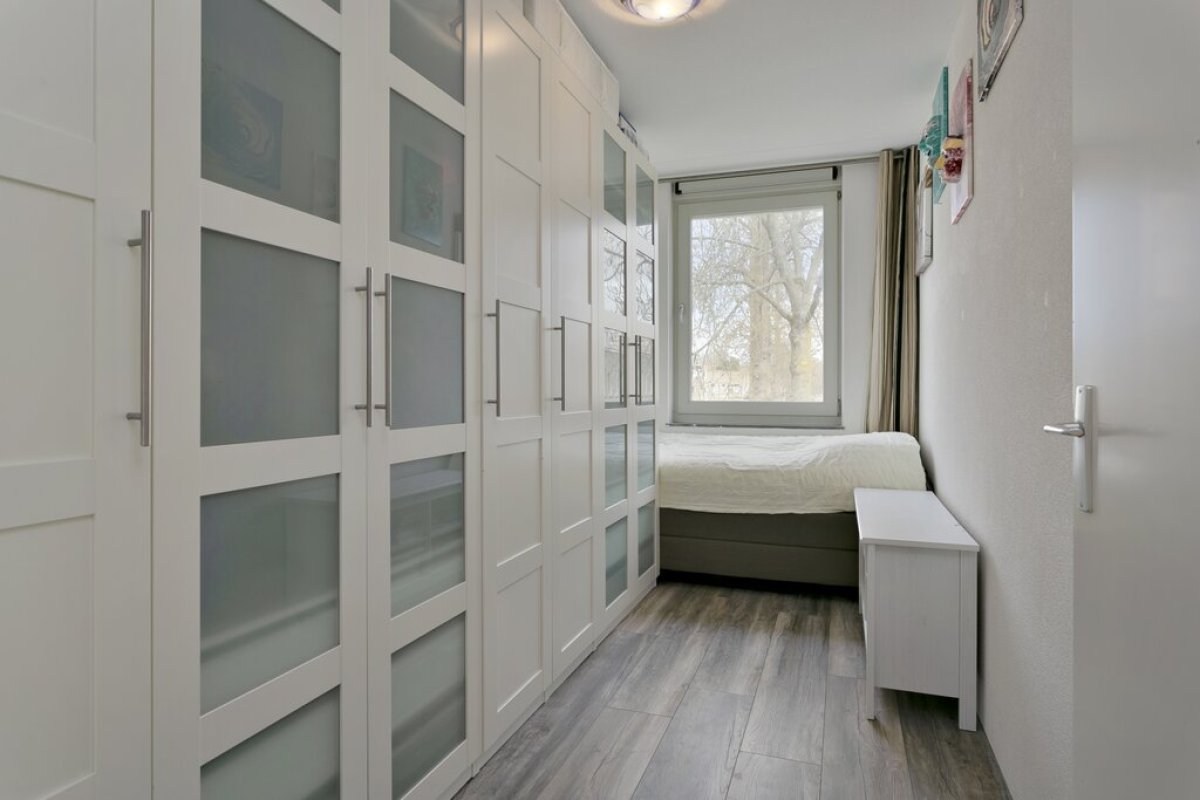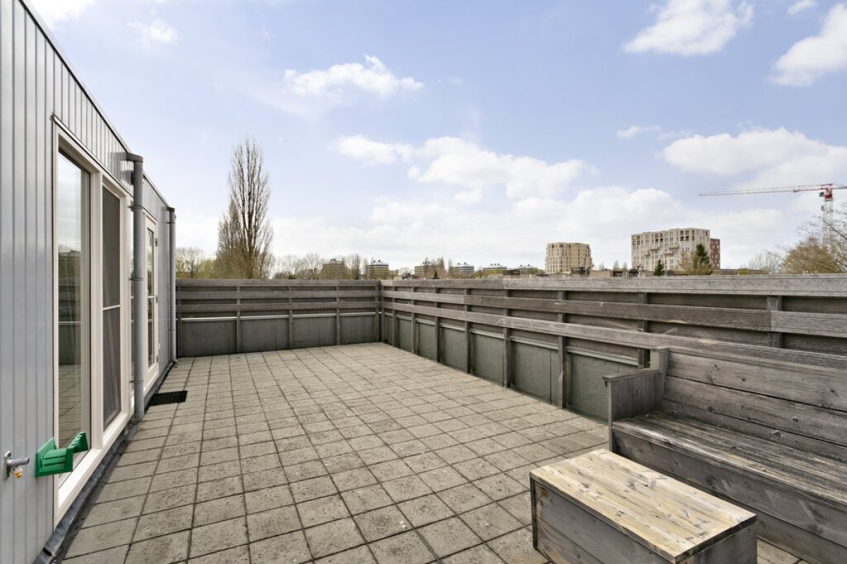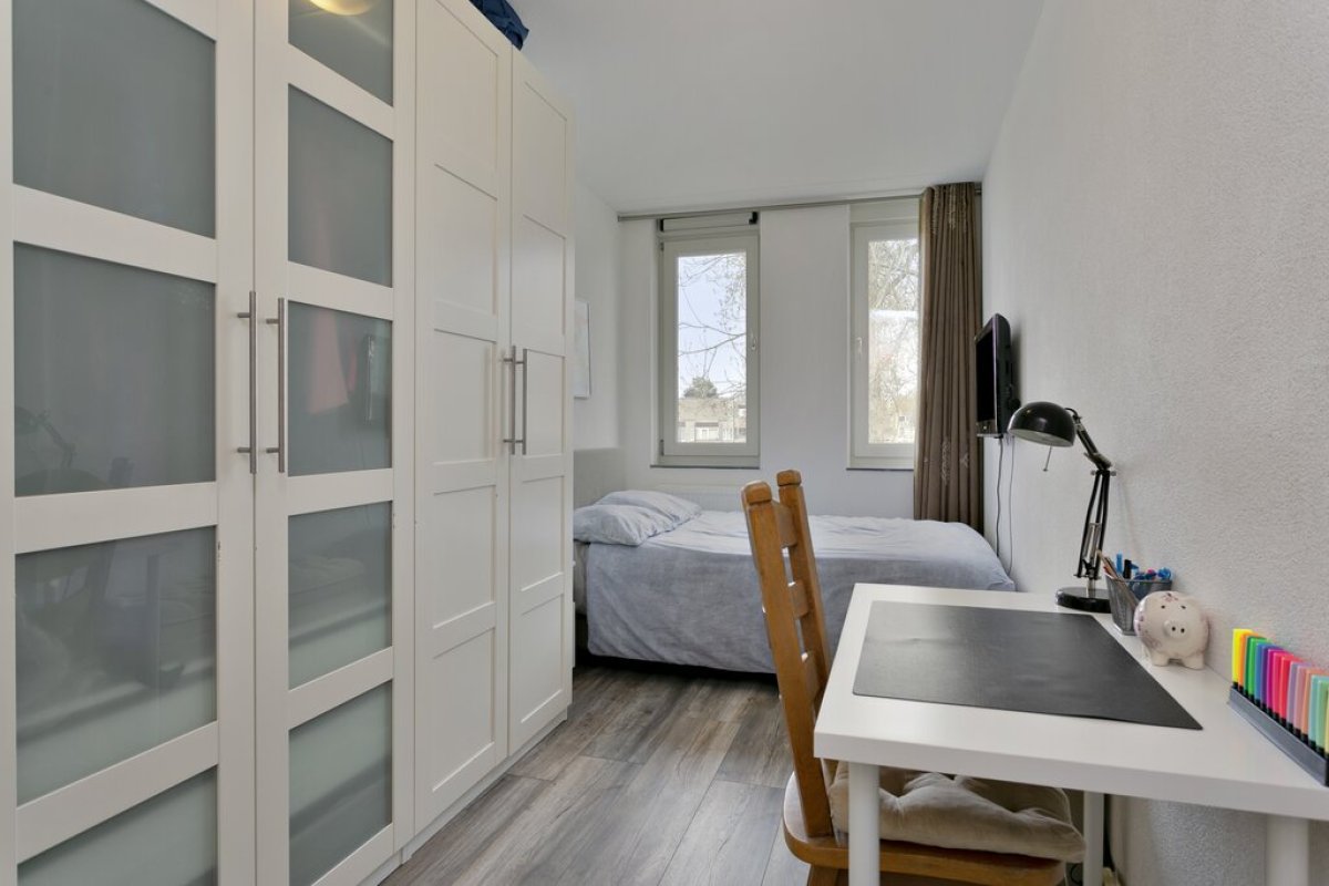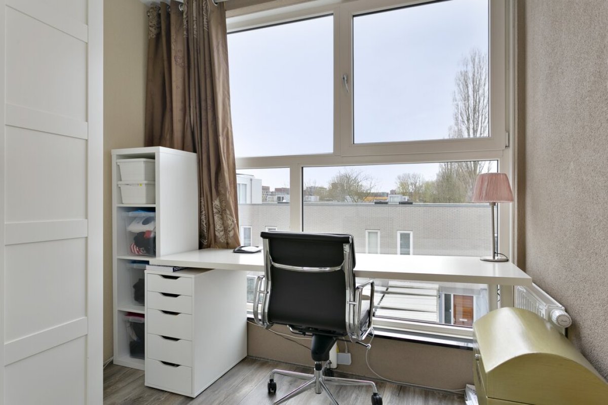 This spacious family house on the outskirts of Amsterdam has a sunny front yard and a large back yard with a wide view. It is located a stone's throw away from City Park Osdorp. The house offers six bedrooms, a bathroom, a large eat-in kitchen, a spacious living room, a sunny roof terrace and a private parking space. Situated in a quiet, green area with quick access to motorways (A10, A9, A4) and good connection with public transport (trams 1, 17) to Amsterdam center, financial district the Zuidas and Schiphol. At walking distance, many shops offer you your daily groceries. Schools and sport clubs are in the direct area as well as day-care.