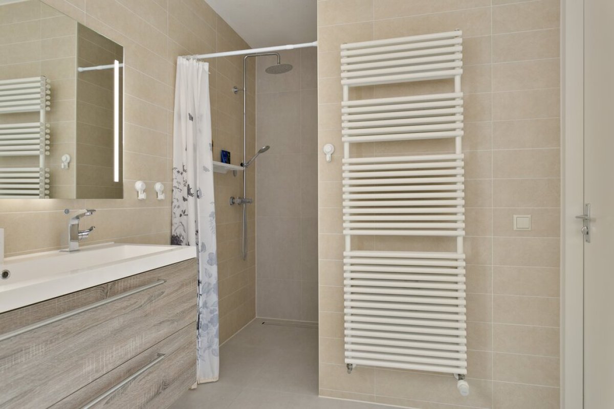 1e verdieping: hier bevinden zich 4 slaapkamers en een moderne badkamer met een inloopdouche, een ligbad, een extra brede wastafel en een toilet. De verdieping biedt verder een kast waarin de wasmachine geplaatst is.