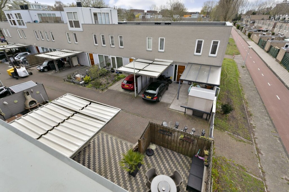 Deze ruime stadswoning van 165m2 met vrij uitzicht heeft liefst 7 kamers en parkeerruimte op eigen terrein. De hoekwoning bestaat uit 3 woonlagen en heeft een heerlijke zonnige voortuin en een achtertuin met uitzicht op een groenstrook. Verder treft u een zeer royale open keuken op de begane grond met een ruime lichte woonkamer, 4 slaapkamers en een badkamer op de eerste verdieping en op de bovenste verdieping vindt u 2 (slaap)kamers en een riant, zonnig dakterras. De vele ramen zorgen voor een heerlijk lichte leefomgeving. De erfpachtcanon is afgekocht tot 31 januari 2058 en daarna is de erfpachtcanon eeuwigdurend vastgelegd.