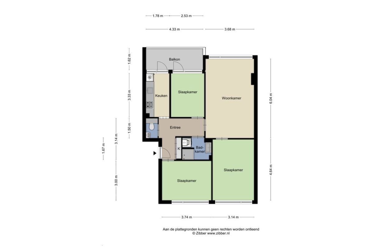 U betreedt het complex via de gemeenschappelijk afgesloten entree op de begane grond waar ook een eigen berging is. Via het centrale trappenhuis komt u op de tweede verdieping waar het appartement zich bevindt. In de ruime entree vindt u het toilet en een bergkast. De entree biedt verder toegang tot bijna alle ruimtes van het appartement. De ruime woonkamer ligt aan de achterzijde van de woning. De grote raampartij zorgt voor veel lichtinval en geeft een vrij uitzicht op een mooi aangelegd plantsoen. De keuken is voorzien van een vaatwasmachine, een 4-pits gaskookplaat en een koelkast en heeft een deur naar het ruime, zonnige balkon. Aan de voorzijde van het appartement zijn 2 ruime slaapkamers. De grootste slaapkamer is via de woonkamer bereikbaar. Het is mogelijk deze bij de woonkamer te betrekken. De derde slaapkamer bevindt zich aan de achterzijde van het appartement en heeft een deur naar het balkon. De badkamer heeft een wastafel en een inloopdouche. Ook vindt u hier de aansluiting voor de wasmachine en de warmwaterboiler.