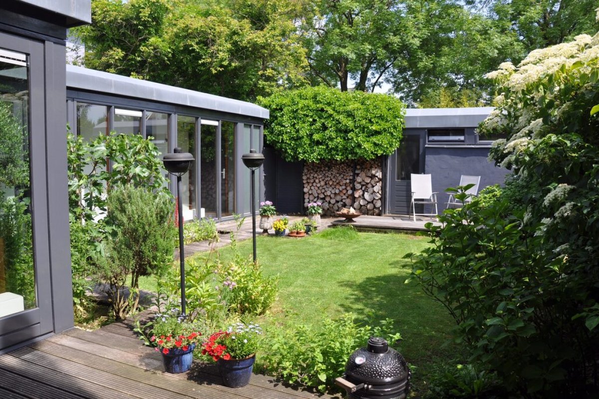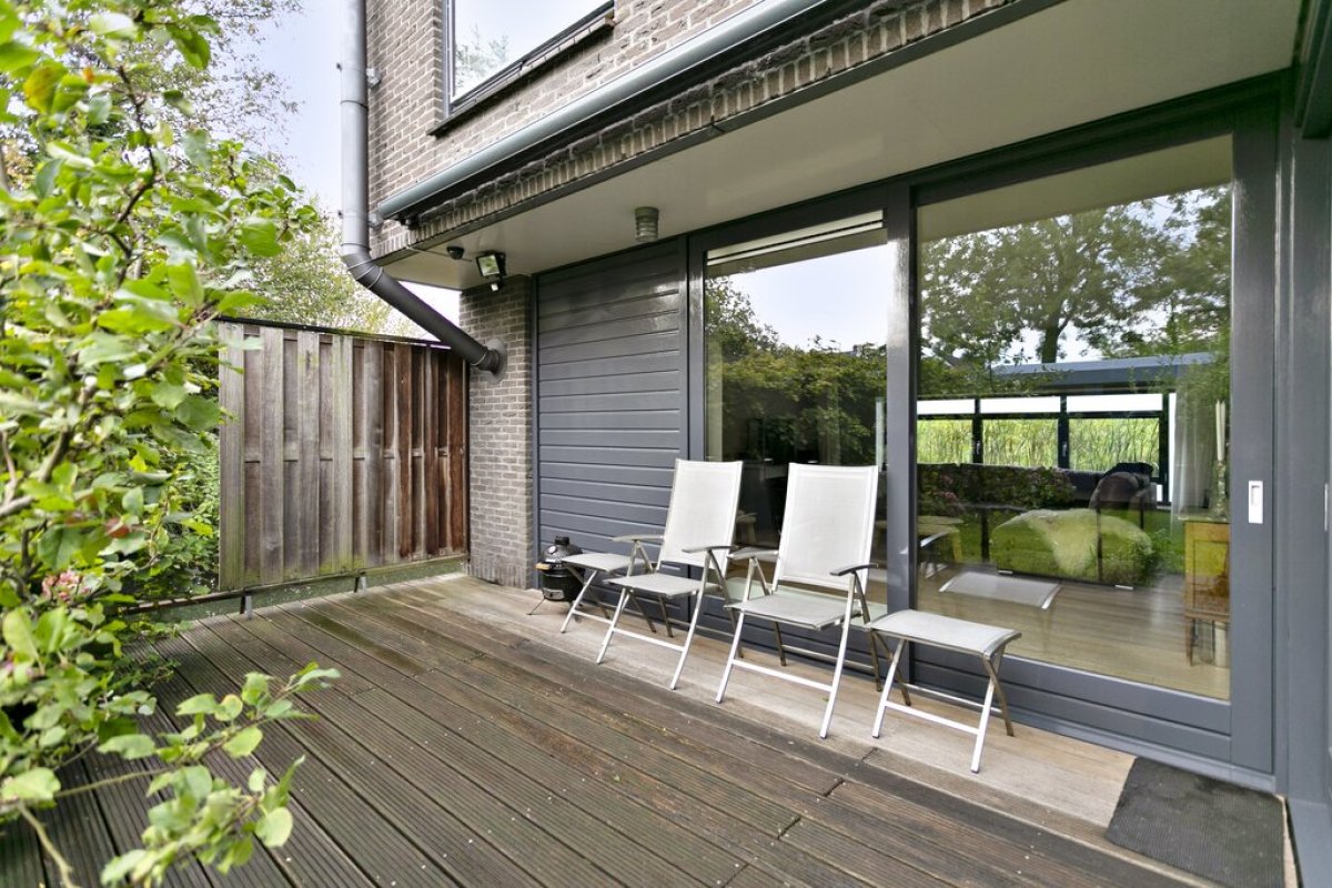 Tuin: De prachtig aangelegde binnentuin ligt tussen de woning en de garage en biedt veel privacy. De tuin heeft 2 terrassen en er staat een overkapping voor het openhaardhout. Via de tuin heeft u directe toegang tot de royale garage van 26m2. Aan de voorkant van de woning treft u voldoende parkeerruimte voor 3 auto’s. De tuin is ook bereikbaar via een deur naast de overdekte entree.