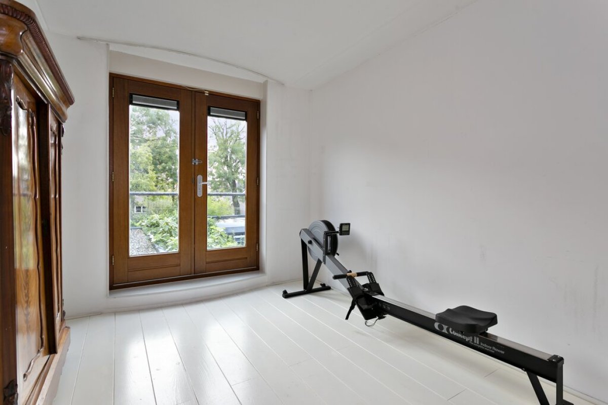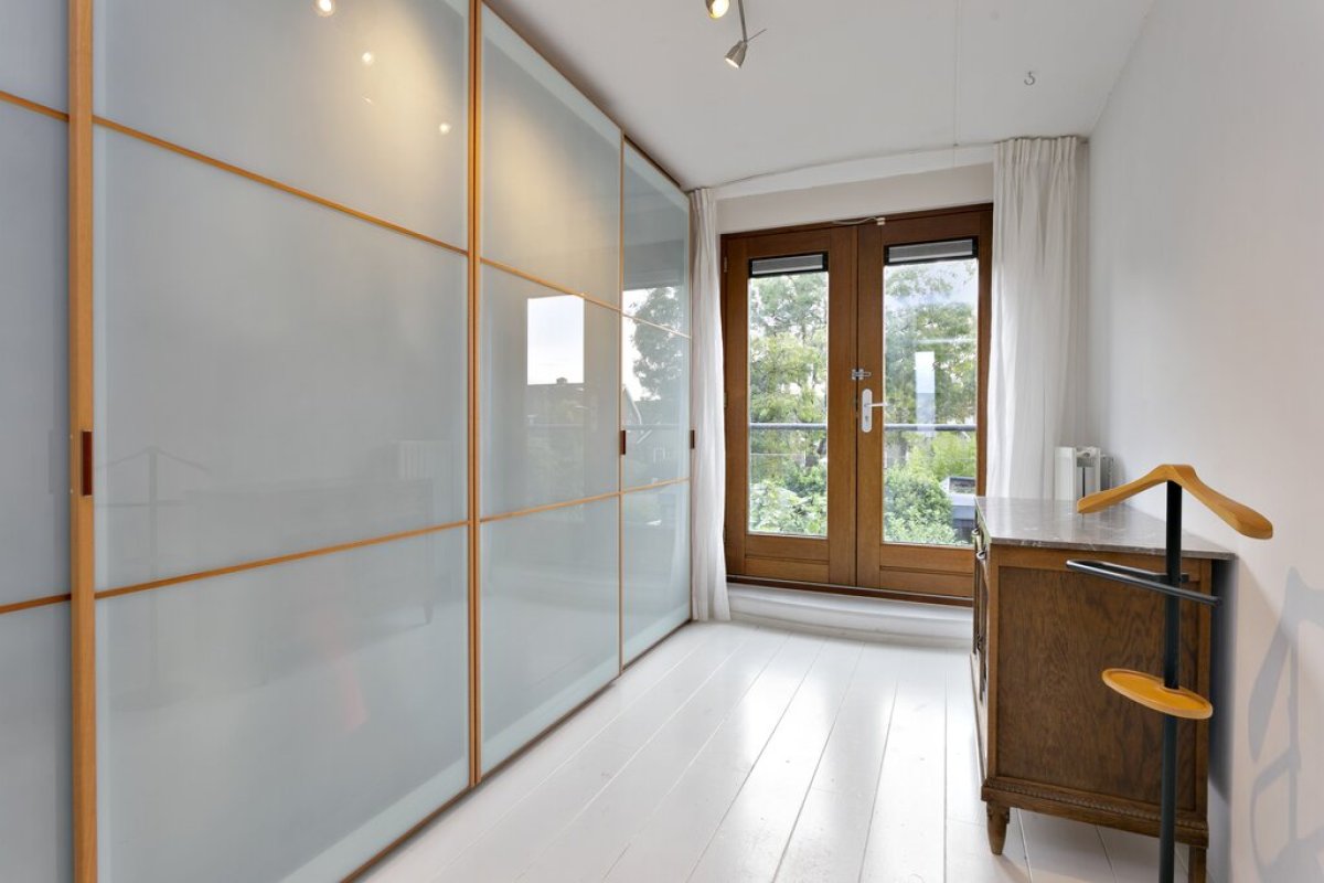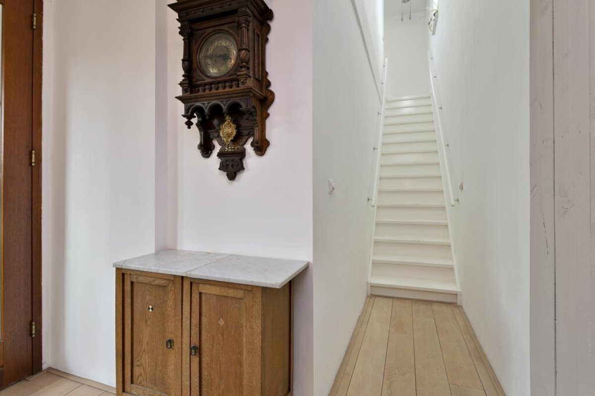 1e verdieping: vanuit de lichthal op de begane grond gaat u via de mooie houten trap naar de overloop op de eerste verdieping. Hier bevinden zich 3 slaapkamers, de luxe badkamer en 3 bergingen, waarvan 1 met de cv-ketel. De moderne badkamer heeft een toilet, een inloopdouche, een ligbad en een dubbele wastafel. De grote slaapkamer biedt voldoende ruimte voor een tweepersoonsbed en een grote kast. De slaapkamers hebben allemaal dubbele openslaande deuren met een Frans balkon met uitzicht op de binnentuin.