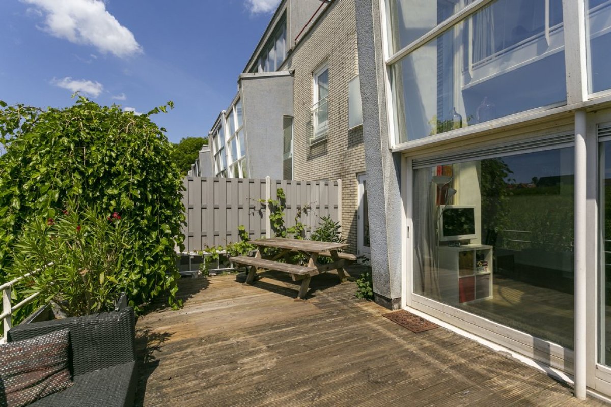 Lovely modern and spacious villa with a light living room, an office, three bedrooms, 2 bathrooms, an eat-in kitchen with living, a sunny garden at waterfront, a roof terrace and a splendid view. Sheltered yet central, situated in a quiet street in the De Aker area with quick access to motorways (A10, A9, A5, A4) and good connection with public transport to Amsterdam center, the Zuidas and Schiphol. Direct access to an ecological nature reserve. At walking distance, many shops offer you your daily groceries. Schools and sport clubs are in the direct area as well as day-care.