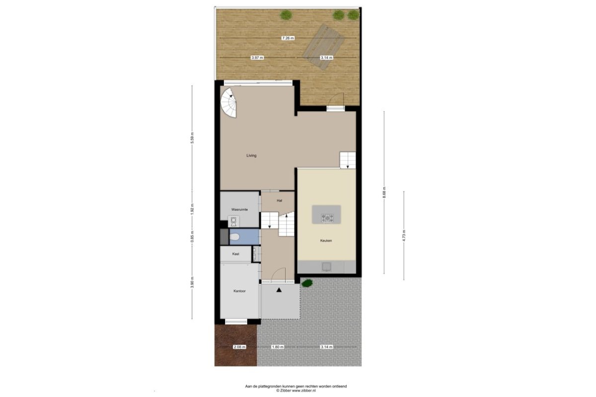 Begane grond: via de overdekte entree komt u in de ruime en lichte hal. Deze hal biedt toegang tot een kamer/kantoor, een berging met aansluiting voor de wasmachine, een toilet, de meterkast en de royale woonkeuken met living. Een wenteltrap verbindt de living direct met de woonkamer op de eerste verdieping. De living heeft een grote schuifpui naar de zonnige, brede tuin die grenst aan de ecostrook. De keuken met kookeiland is geplaatst op een verhoogd gedeelte waar voorheen de garage was. Vanuit het kookgedeelte kijkt u uit op het eetgedeelte, de living en de tuin. De woonkeuken en hal zijn voorzien van een pvc-vloer met vloerverwarming.