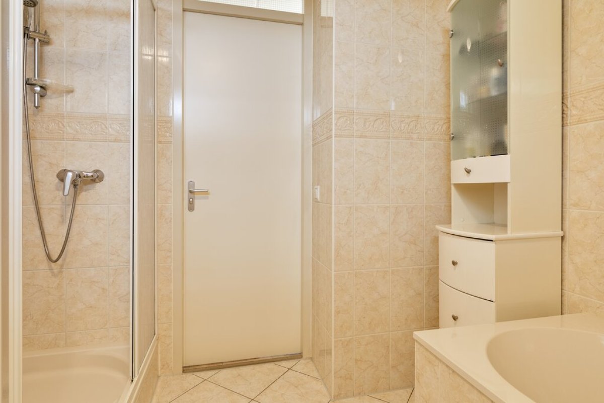 2de verdieping: op deze verdieping bevinden zich 3 slaapkamers en een tweede badkamer met een douche, een wastafel en aansluiting voor de wasmachine. Tevens vindt u hier een separaat toilet. De grootste slaapkamer geeft toegang tot een dakterras aan de voorzijde van de woning. Vanaf het terras heeft u een prachtig uitzicht over de ecostrook.