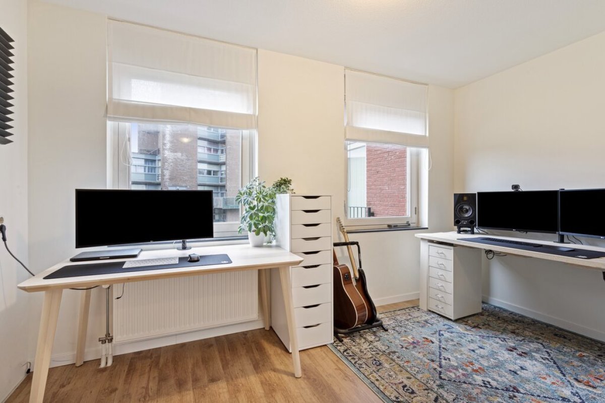 Spacious maisonnette (two-floor apartment) with two bedrooms, a sunny covered balcony, a luxury bathroom, a living room with a modern kitchen and a storage in the basement. Situated in De Aker (Amsterdam Nieuw West) with quick access to motorways (A4, A5, A10, A9) and good connection with public transport (tram 1) to Amsterdam center, the Zuidas and Schiphol. At walking distance, many shops offer you your daily groceries. Schools are in the direct area as well as day-care. Ready to move in.