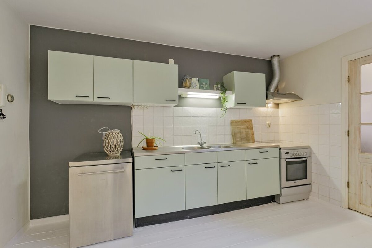 Via de gemeenschappelijk trap komt u op de eerste verdieping waar het appartement zich bevindt. De entree komt uit in de woonkamer met open keuken. Vanuit deze ruimte komt u middels 2 openslaande deuren op het gezellige terras. Naast de keuken vindt u de badkamer met een douche/ligbad, een wastafel en het toilet. Hier is ook de wasmachine geplaatst. Aan de andere kant van de keuken vindt u een kast waar de cv-ketel is geplaatst. De slaapkamer ligt aan de voorzijde en heeft voldoende ruimte voor een tweepersoonsbed en een grote garderobekast. In bijna de gehele woning ligt een massief houten vloer.