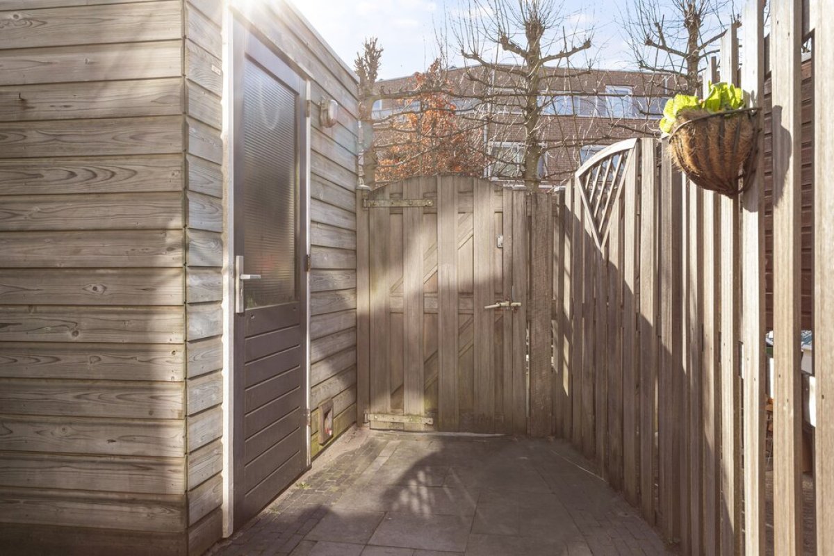 Tuin: De tuin van ruim 40m2 met achterom ligt op het zuidwesten zodat u bijna de gehele dag van de zon kan genieten. In de tuin staat een houten schuur van 7,5m2. Er is tevens een kleine voortuin.