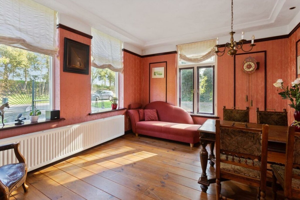 Begane grond: via de entree komt u in de ruime hal met een toilet. De hal biedt toegang tot een tweetal kamers, thans een herenkamer en een praktijkruimte, en de zeer royale woonkamer met open keuken. De lichte woonkamer met open haard heeft veel raampartijen die aan de achterzijde van de woonkamer een prachtig uitzicht bieden over de eigen weides en de polder. Via 2 openslaande deuren komt u uit op het grote terras op het zuiden. In de gezellige keuken vindt u diverse inbouwapparatuur zoals een 5-pits gasfornuis met brede oven, een vaatwasser en een Amerikaanse koelkast. Aan de achterkant van de woonkamer is een hal die toegang geeft tot de bijkeuken en de garage. Het terras is ook via deze bijkeuken te bereiken. In de woonkamer vindt u de trap naar de (wijn)kelder en toegang tot de wasruimte met een deur naar het terras aan de zijkant. Op bijna de gehele begane grond liggen Portugese tegels met vloerverwarming.