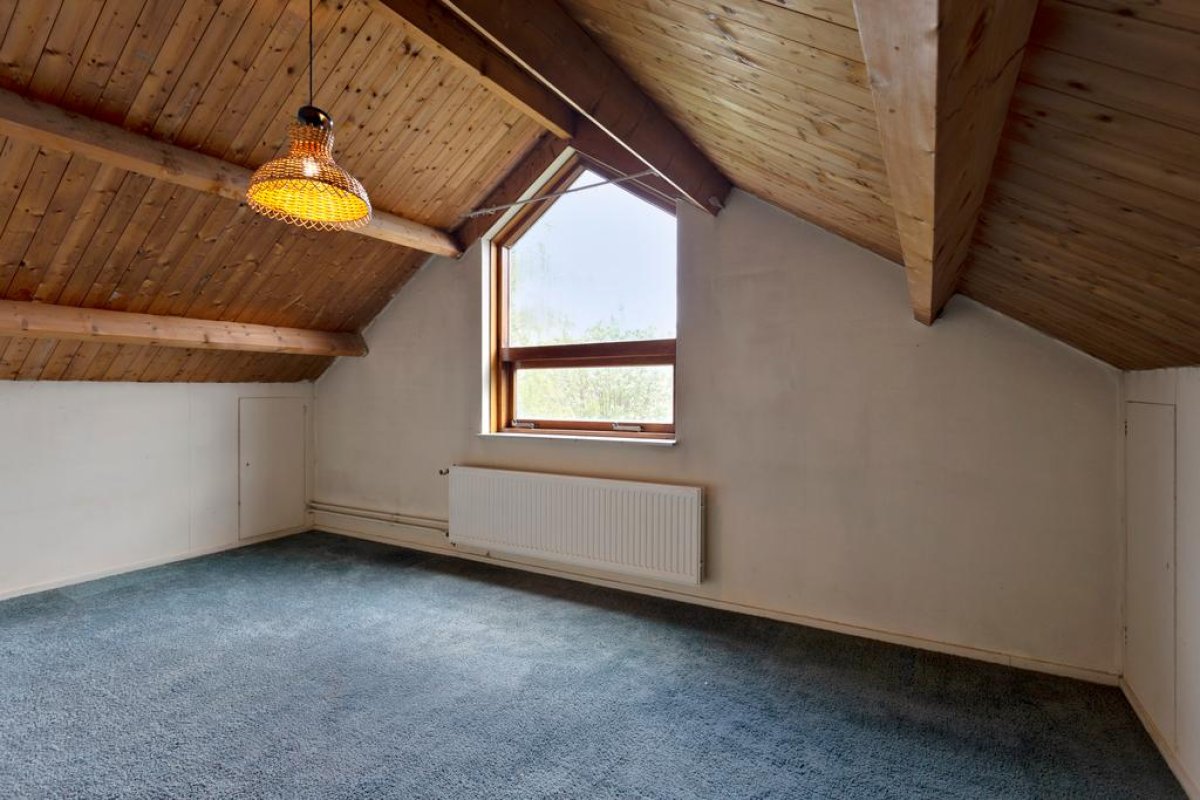Tweede verdieping: via een vaste trap komt u op de ruime overloop. Hier zit de aansluiting voor de wasmachine en is de cv-ketel geplaatst. De overloop biedt toegang tot 2 grote slaapkamers. Het is mogelijk om hier meer ruimte te creëren door 1 of 2 dakkapellen te plaatsen. Onder het schuine dak vindt u enorm veel bergruimte.