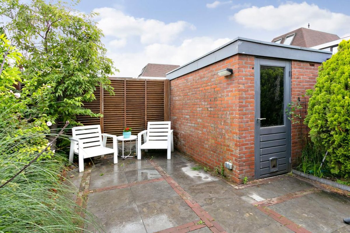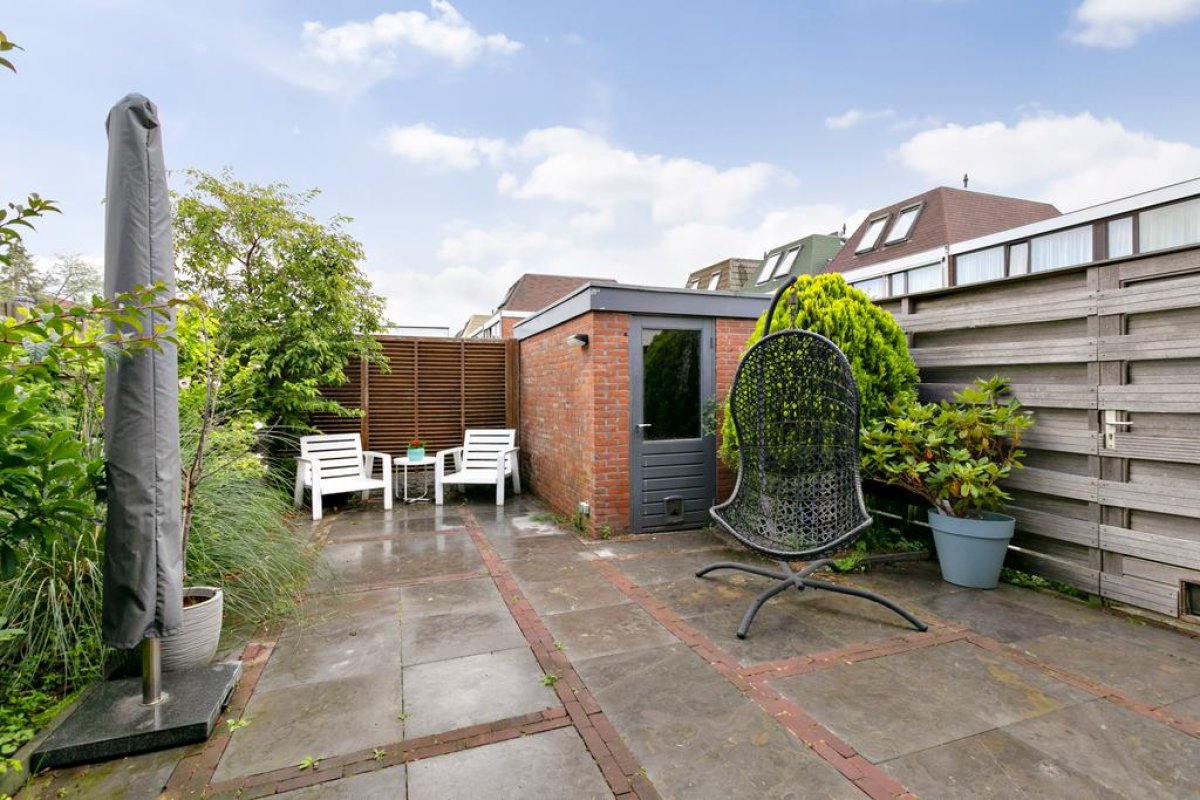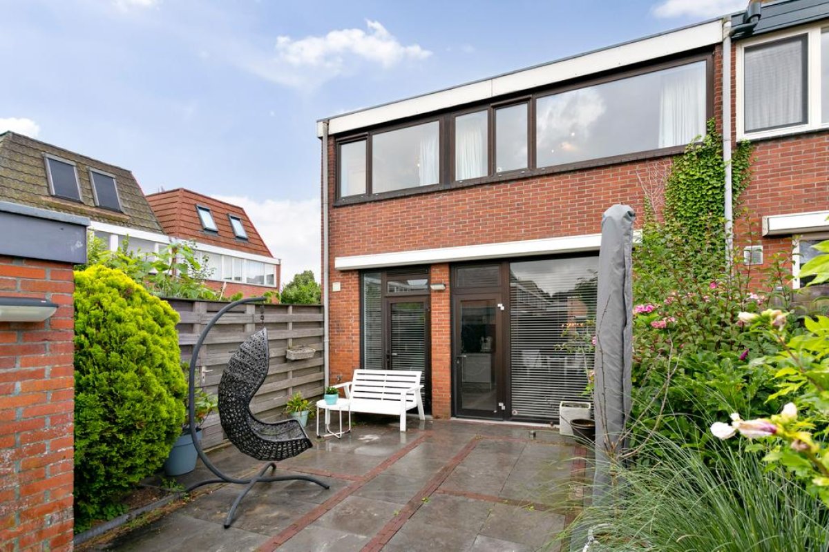 Tuin: De woning heeft een ruime voortuin en een achtertuin zodat u de gehele dag van de zon kunt genieten. In de achtertuin staat een stenen berging van 7m2. De achtertuin heeft een achterom.