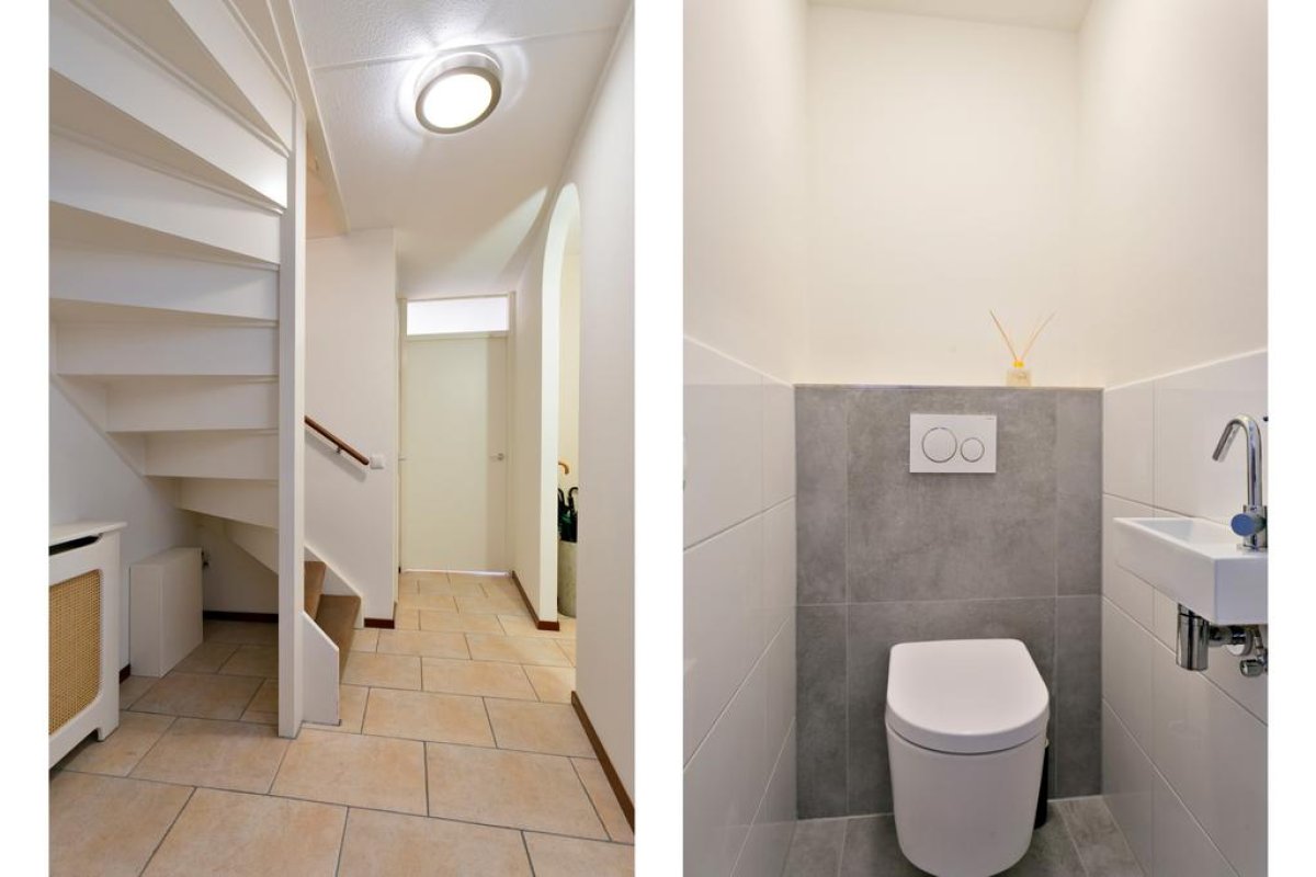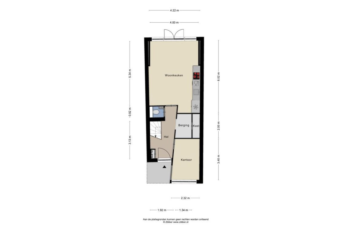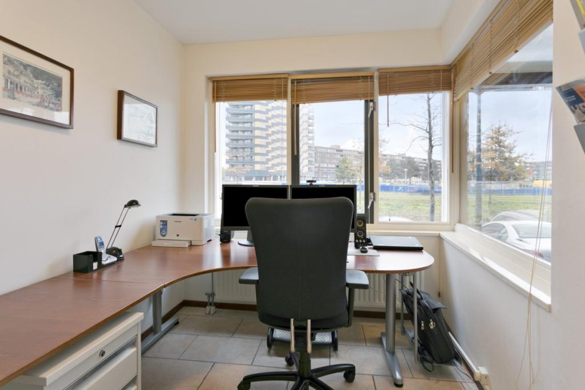 Begane grond: via de entree komt u in de hal van de woning. De hal biedt toegang tot de ruime en lichte woonkeuken met uitzicht op de tuin, een kantoor aan de voorzijde van de woning, een separaat toilet en een ruime berging met een vaste garderobekast. De moderne keuken is recent geplaatst en voorzien van diverse inbouwapparatuur waaronder een inductiekookplaat, een combimagnetron, een Amerikaanse koelkast en een afwasmachine. Er is voldoende ruimte voor een grote eettafel. Via 2 openslaande deuren komt u in de zonnige tuin op het zuidwesten.