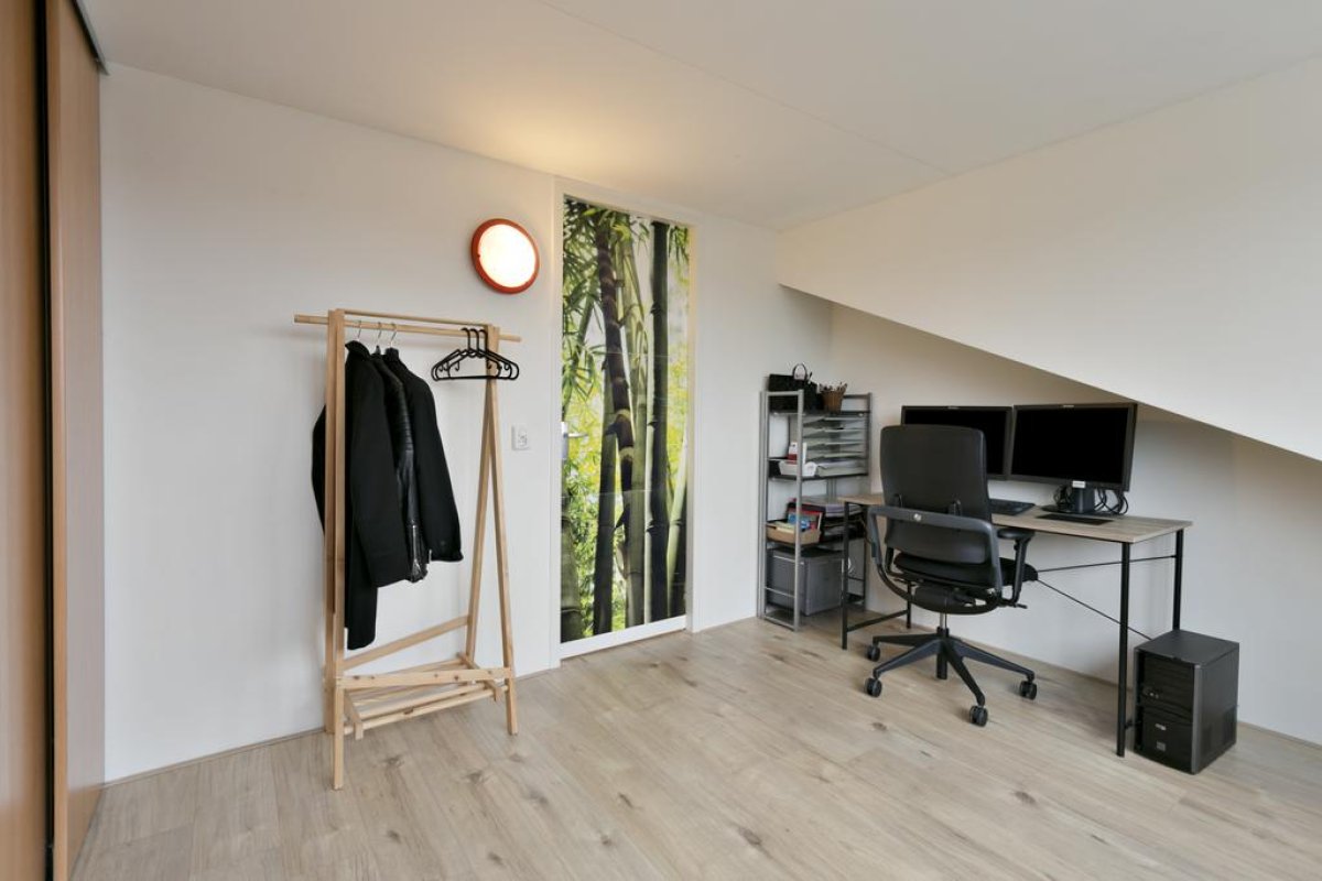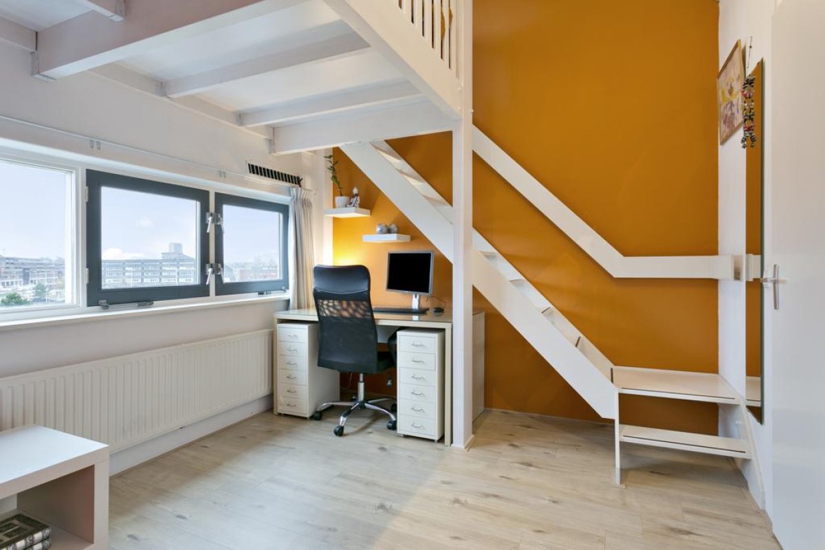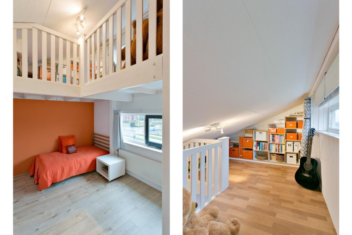 3e verdieping: via een vaste trap bereikt u de 3e verdieping. Hier treft u nog eens 2 royale slaap/werkkamers. De ruimte aan de voorzijde heeft een extra hoog plafond en een entresol, ideaal voor extra speelruimte en/of bergruimte. In de kamer aan de achterkant is een dakkapel geplaatst waardoor dit een volwaardige (slaap)kamer is geworden met veel bergruimte. Er is tevens een aparte ruimte waar de cv-ketel geplaatst is. Hier vindt u een wastafel en de aansluiting voor wasmachine en droger.