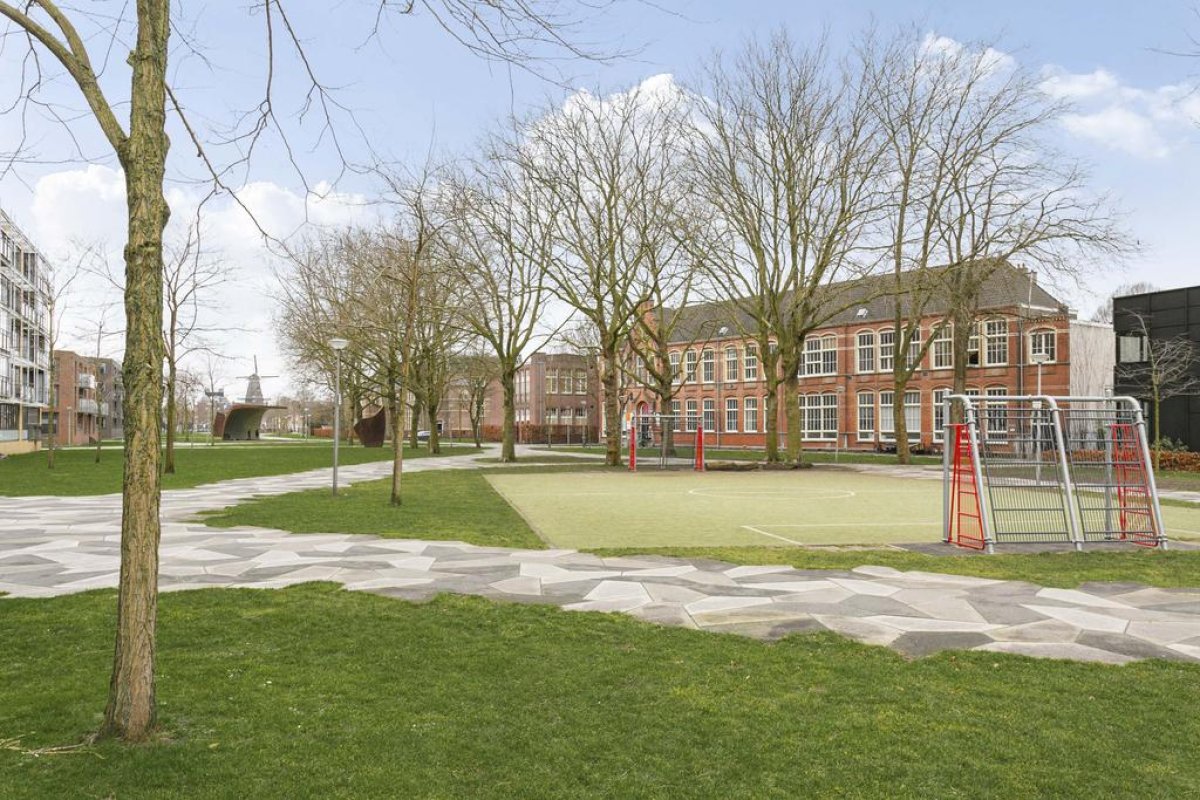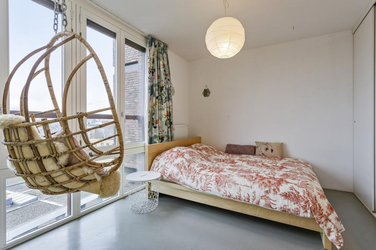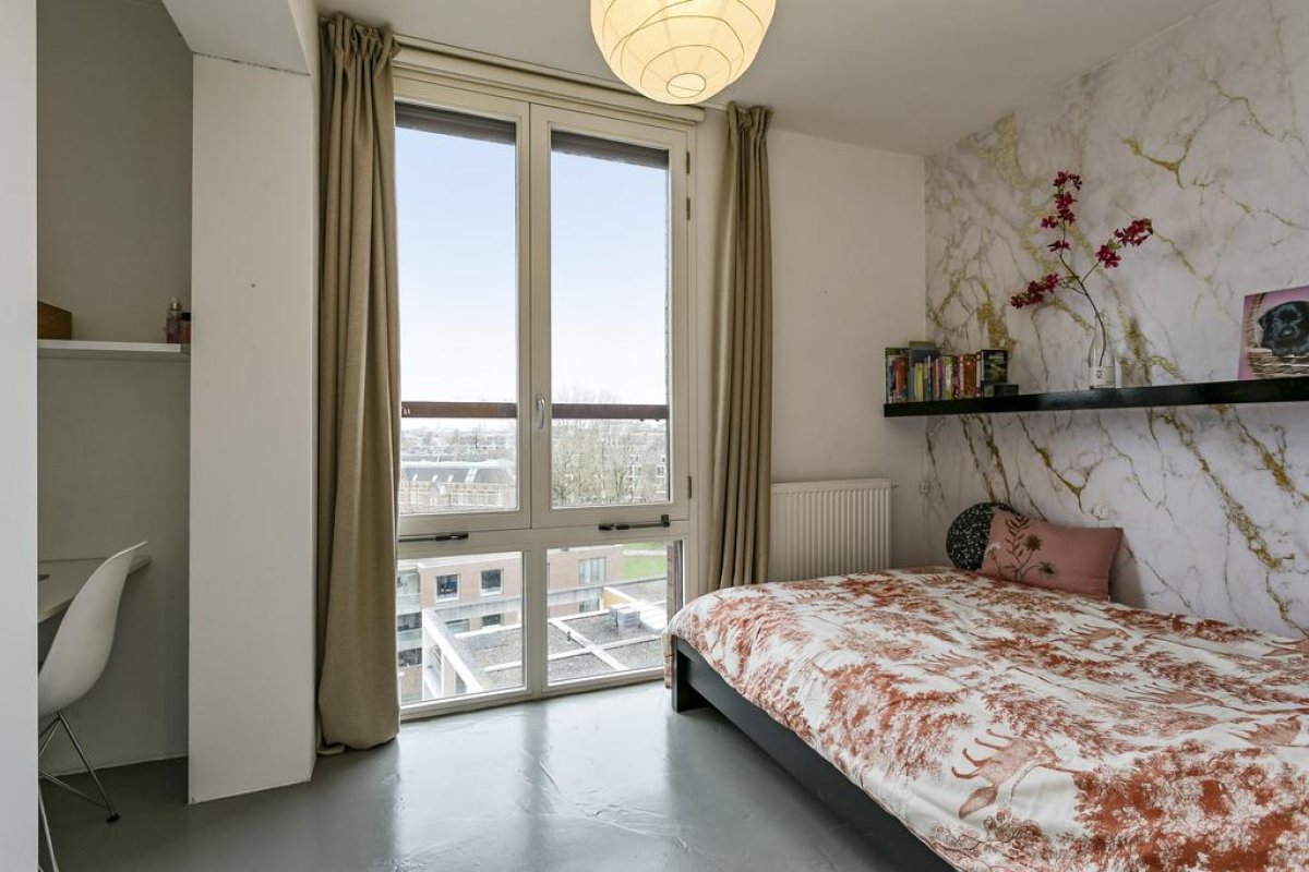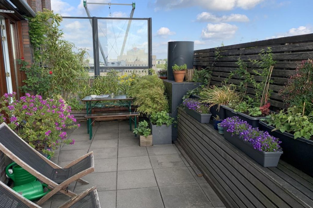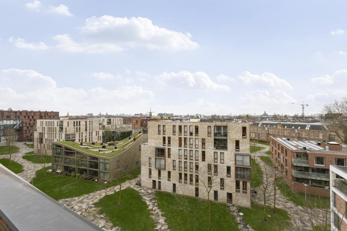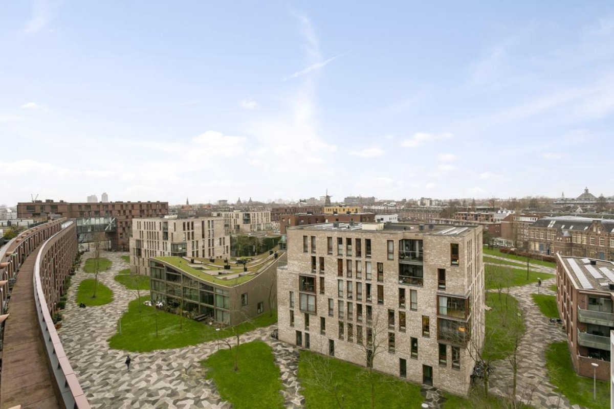 This unique and spacious apartment on own ground in Funenpark has a royal terrace and a stunning view over the city. It offers a large and light living room with open kitchen, 3 sizeable bedrooms, a luxurious bathroom, a large private terrace (south side), extra storage and a private parking spot in the basement of the building. The maisonnette with private entrance stretches over the 6th and 7th. floor. This beautiful apartment is situated in Funenpark, a car-free city park with something for everyone such as a sustainable and circular playground, many walking paths along various art objects, sport fields and green lawns. A supermarket, shops, boutiques, a daily market, the Artis Zoo, restaurants and bars are all in the direct area. Stops for public transport (trams 7, 26 and bus 22) are just around the corner and by car it’s only a few minutes’ drive to the A10.