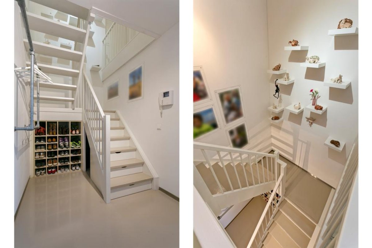 Entree & hal Via de entree komt u in de ruime hal. Deze biedt veel handige opbergruimte zoals schoenenvakken, lades in de trap en ruimte achter de trap. Verder vindt u hier een toilet en de opgang naar de 2e woonlaag. Via de entree komt u in de royale woonkamer met moderne keuken.