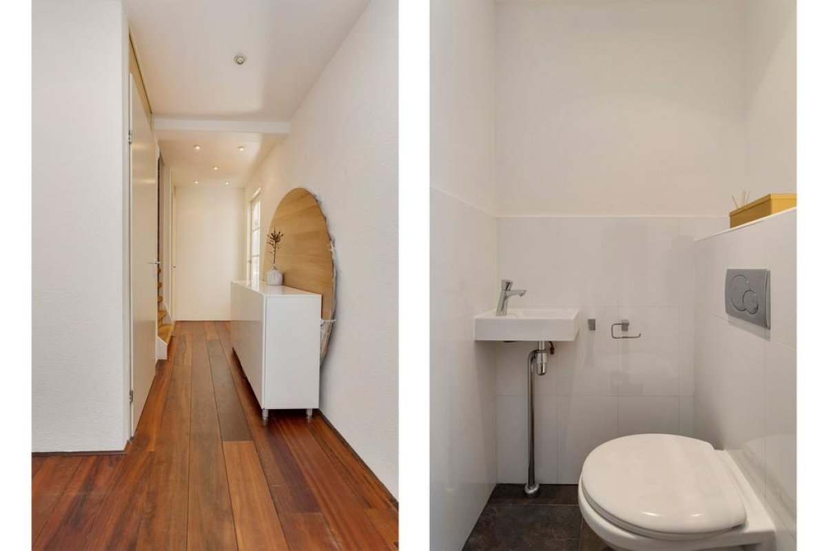 Begane grond: via de entree komt u in de hal. Hier vindt u een toilet en de meterkast. De hal biedt toegang tot de woonkamer met open keuken. De open keuken is voorzien van diverse inbouwapparatuur waaronder een inductiekookplaat, een oven, een combi-magnetron, een koelkast, een vriezer en een vaatwasser. De lichte woonkamer bevindt zich aan de achterzijde van de woning en kijkt uit op de zonnige achtertuin die u via een deur betreedt. Op de begane grond ligt een massief houtenvloer.