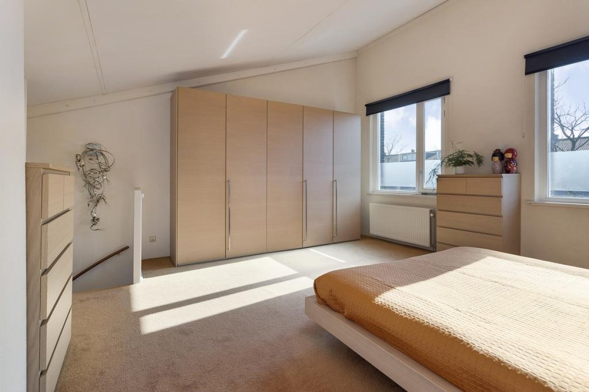 2de verdieping: via de trap komt u op de overloop die toegang biedt tot de royale slaapkamer. Ook deze ruimte heeft een verhoogd plafond. Daarnaast is op deze verdieping de berging met aansluitingen voor wasmachine en wasdroger, de mechanische installatie en de cv-ketel. Op deze verdieping kan een extra (slaap)kamer en/of badkamer gerealiseerd worden.
