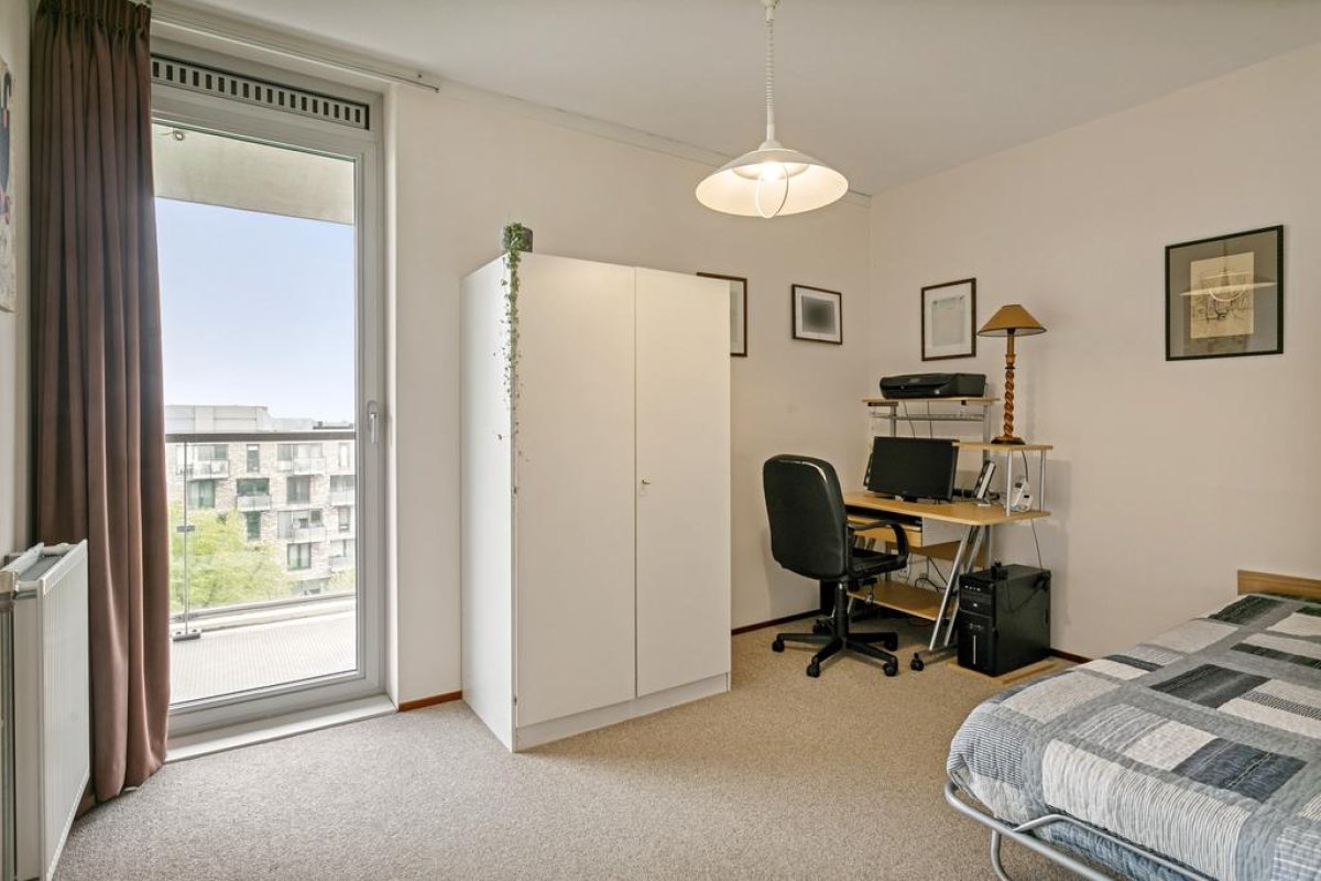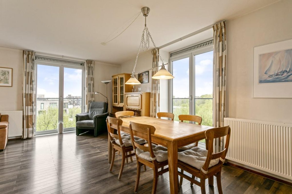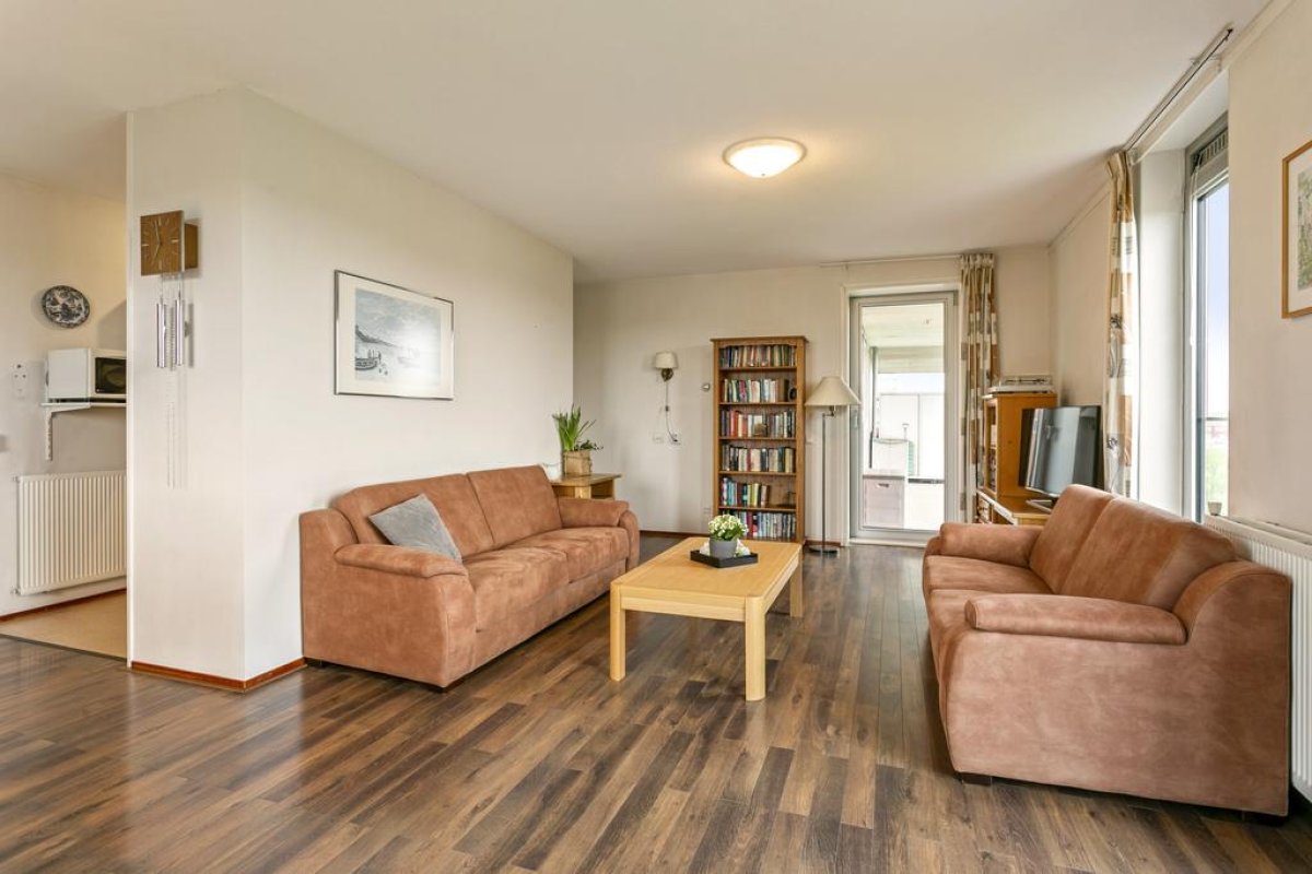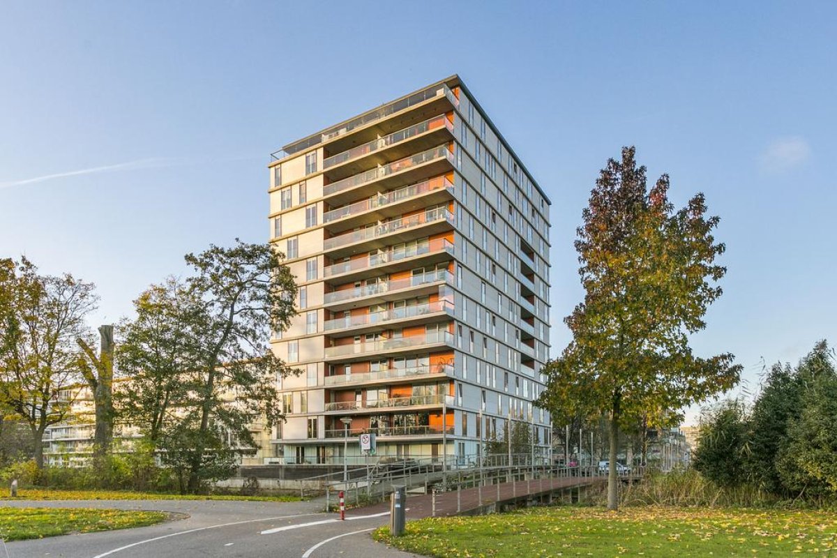Spacious apartment of 94m2 on the 6th floor of a residential complex with a private parking place. The apartment has a light living room with half open kitchen, two bedrooms, a covered large balcony, a bathroom, a storage and room for 2 or 3 bicycles in the general storage. The residential complex is situated near Botteskerkpark, a parc with urban farm Osdorp and a playground. At walking distance, many shops offer you your daily groceries. Schools and sport clubs are in the direct area as well as day-care. The residence has quick access to highways A10 and A9 and good connection with public transport to Amsterdam Central Station (tram 17) and to Sloterdijk Station, Lelylaan and Schiphol (bus 61, 63 en 369).