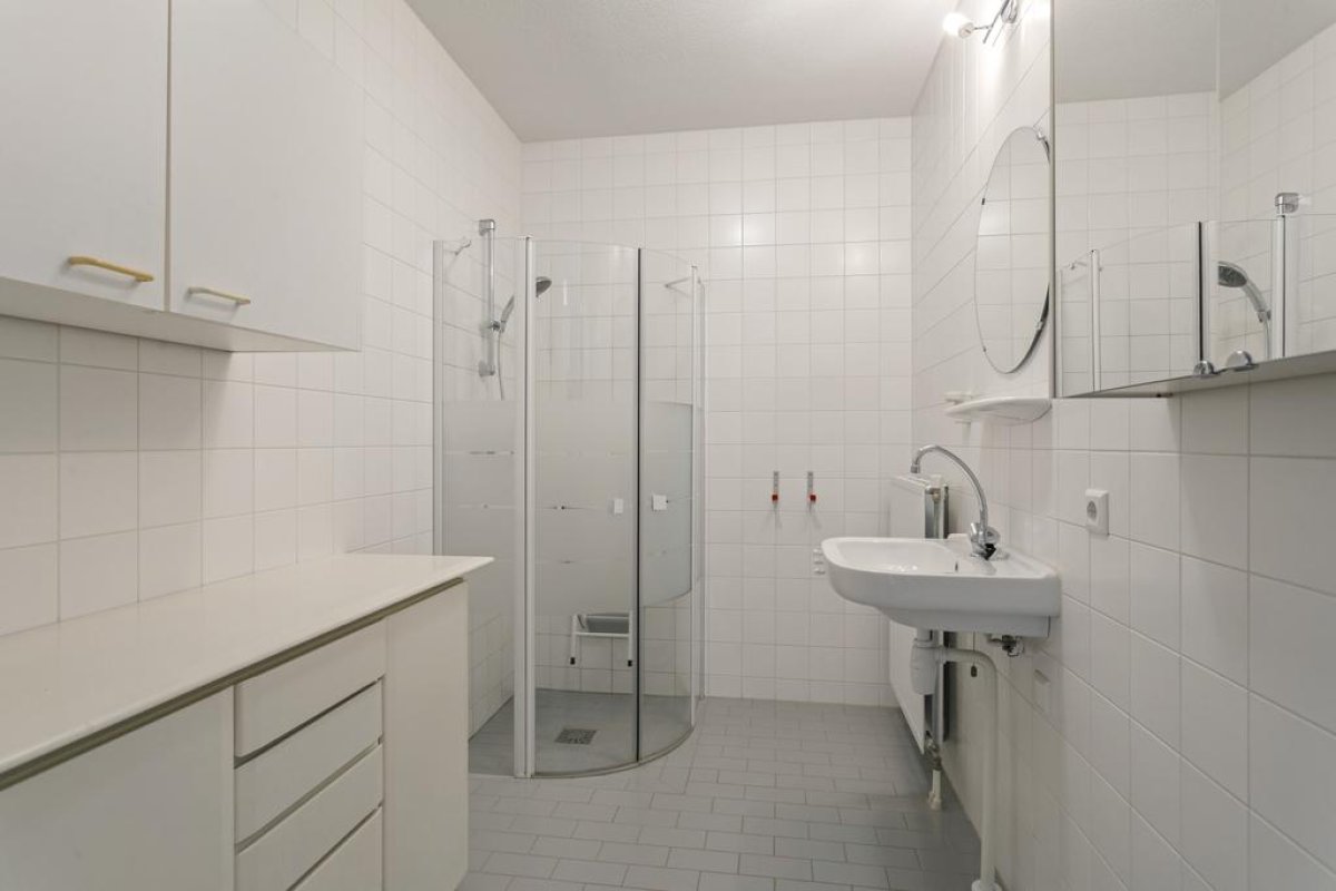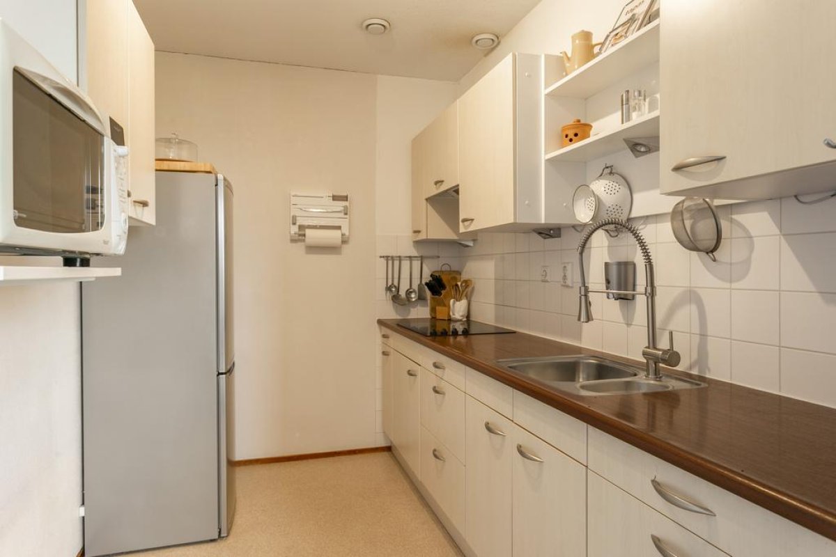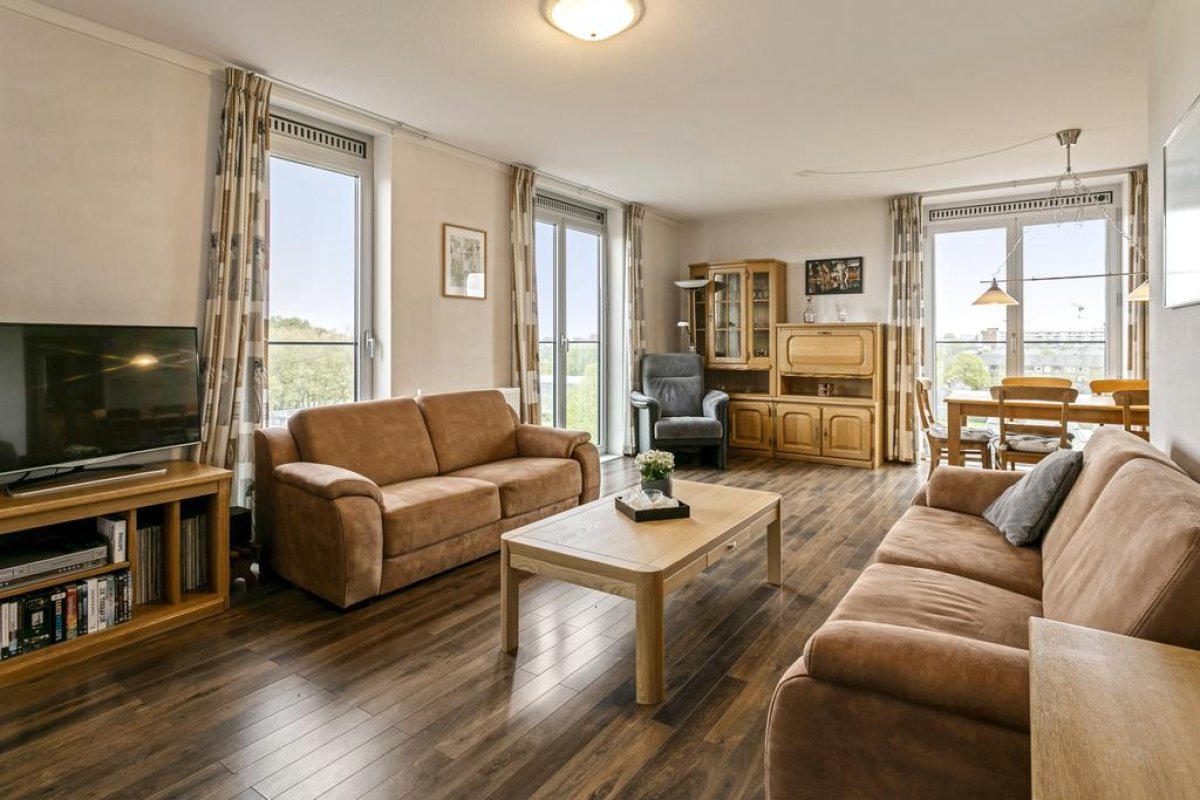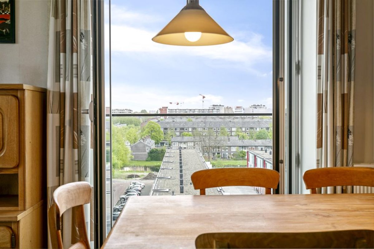 Spacious apartment of 94m2 on the 6th floor of a residential complex with a private parking place. The apartment has a light living room with half open kitchen, two bedrooms, a covered large balcony, a bathroom, a storage and room for 2 or 3 bicycles in the general storage. The residential complex is situated near Botteskerkpark, a parc with urban farm Osdorp and a playground. At walking distance, many shops offer you your daily groceries. Schools and sport clubs are in the direct area as well as day-care. The residence has quick access to highways A10 and A9 and good connection with public transport to Amsterdam Central Station (tram 17) and to Sloterdijk Station, Lelylaan and Schiphol (bus 61, 63 en 369).