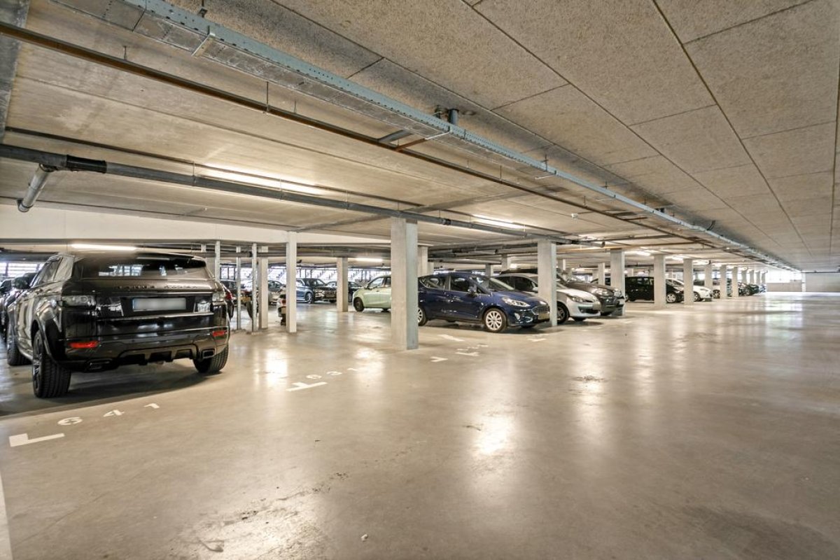 Bij het appartement hoort tevens een fietsenstalling (voor 2 à 3 fietsen) in een af te sluiten ruimte in de onderbouw en een eigen parkeerplaats in de parkeerkelder van het naastgelegen complex.