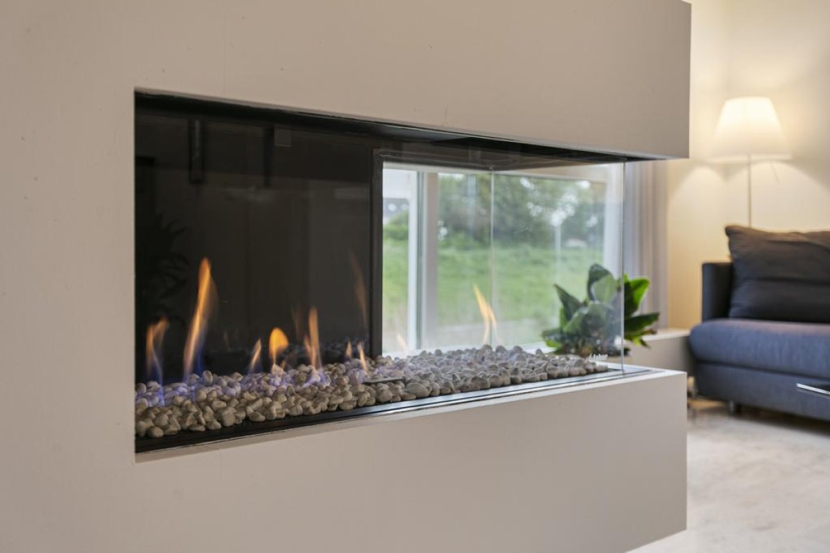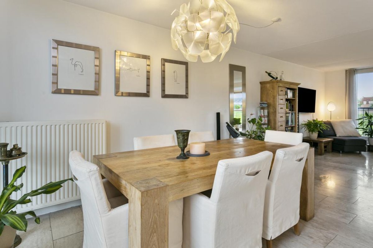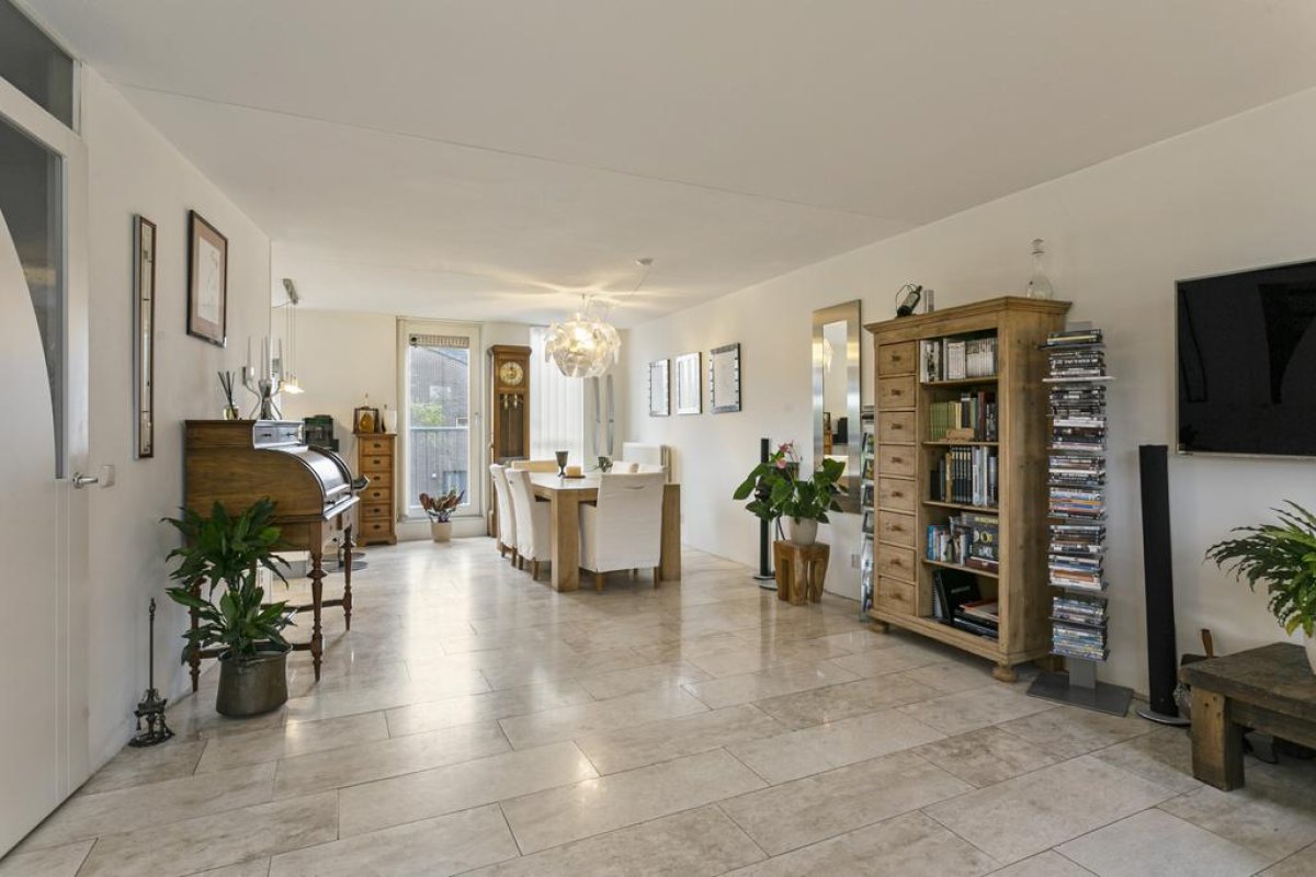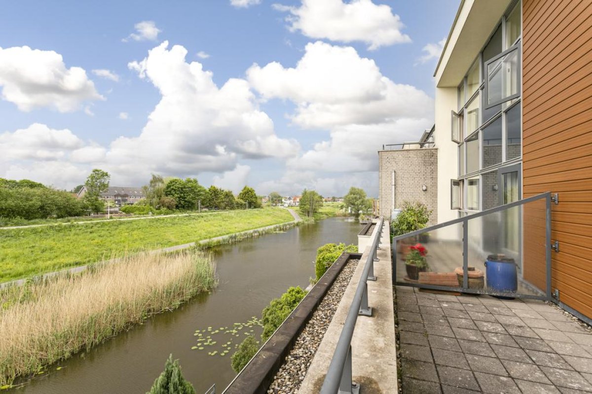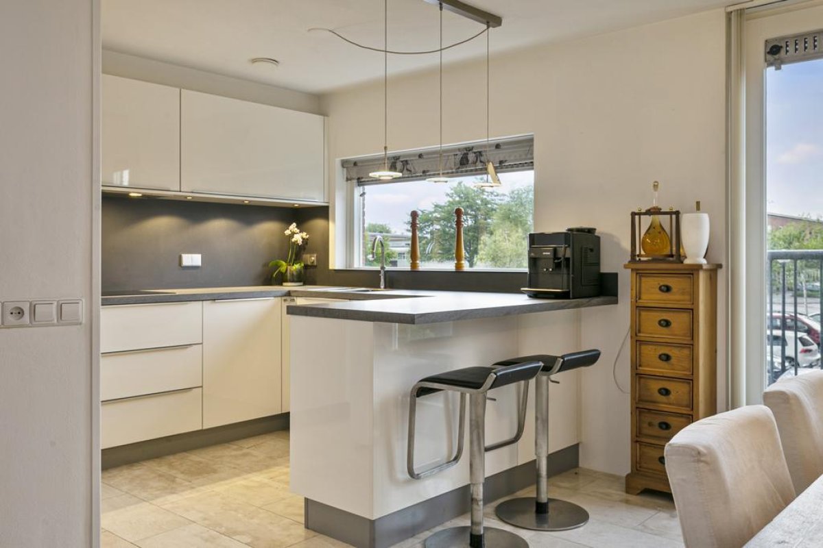 1e verdieping: via de trap in de hal komt u op de eerste verdieping waar de woonkamer en de halfopen keuken zich bevinden. De keuken heeft een schiereiland met bar en is voorzien van diverse apparatuur zoals een vaatwasser, een combi-magnetron, een Quooker, een inductiekookplaat en een Amerikaanse koelkast. Deze verdieping heeft aan de voor- en achterzijde grote raampartijen en Franse balkons waardoor er veel lichtinval is. Vanuit het zitgedeelte aan de achterzijde heeft u een prachtig uitzicht over de ecostrook en de Ringvaart. De moderne gashaard zorgt voor een warme sfeer. De gehele verdieping is voorzien van een marmeren vloer.