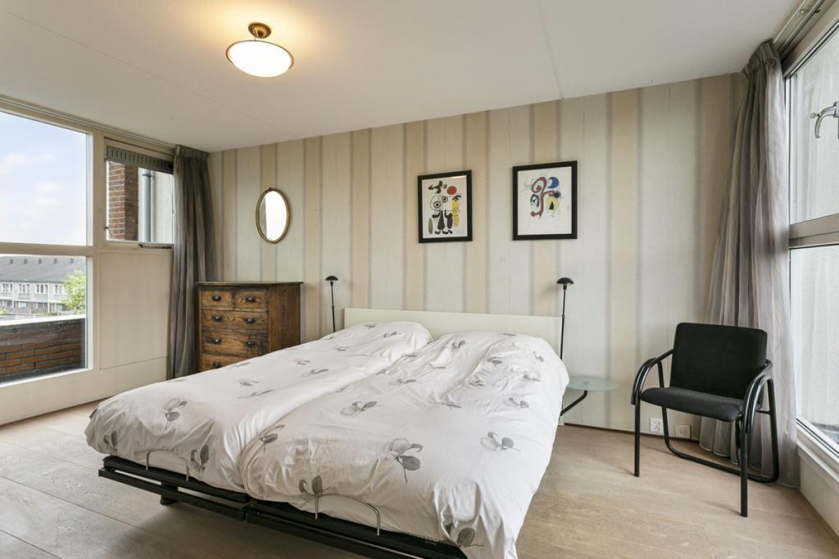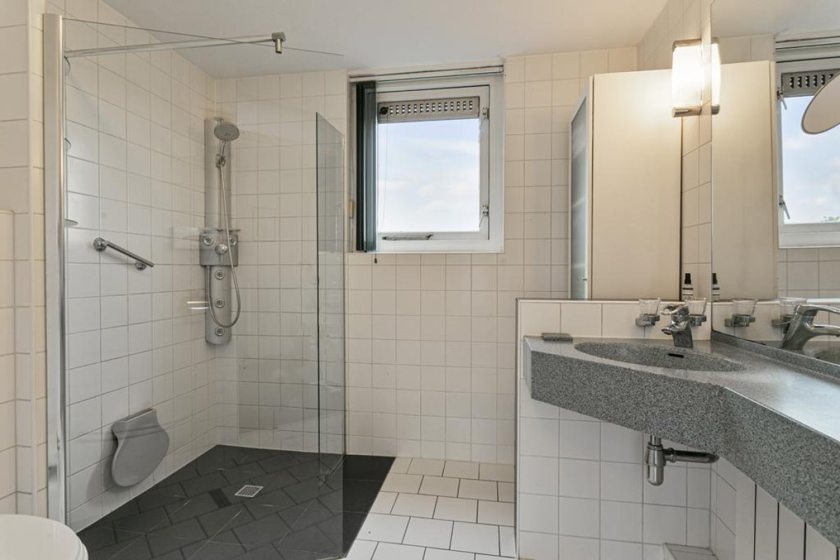 2de verdieping: via de trap komt u op de overloop van de tweede verdieping. Hier vindt u de masterbedroom, een badkamer en een riant dakterras op het zuidwesten. De badkamer heeft een inloopdouche, een wastafel en een toilet en is voorzien van vloerverwarming.