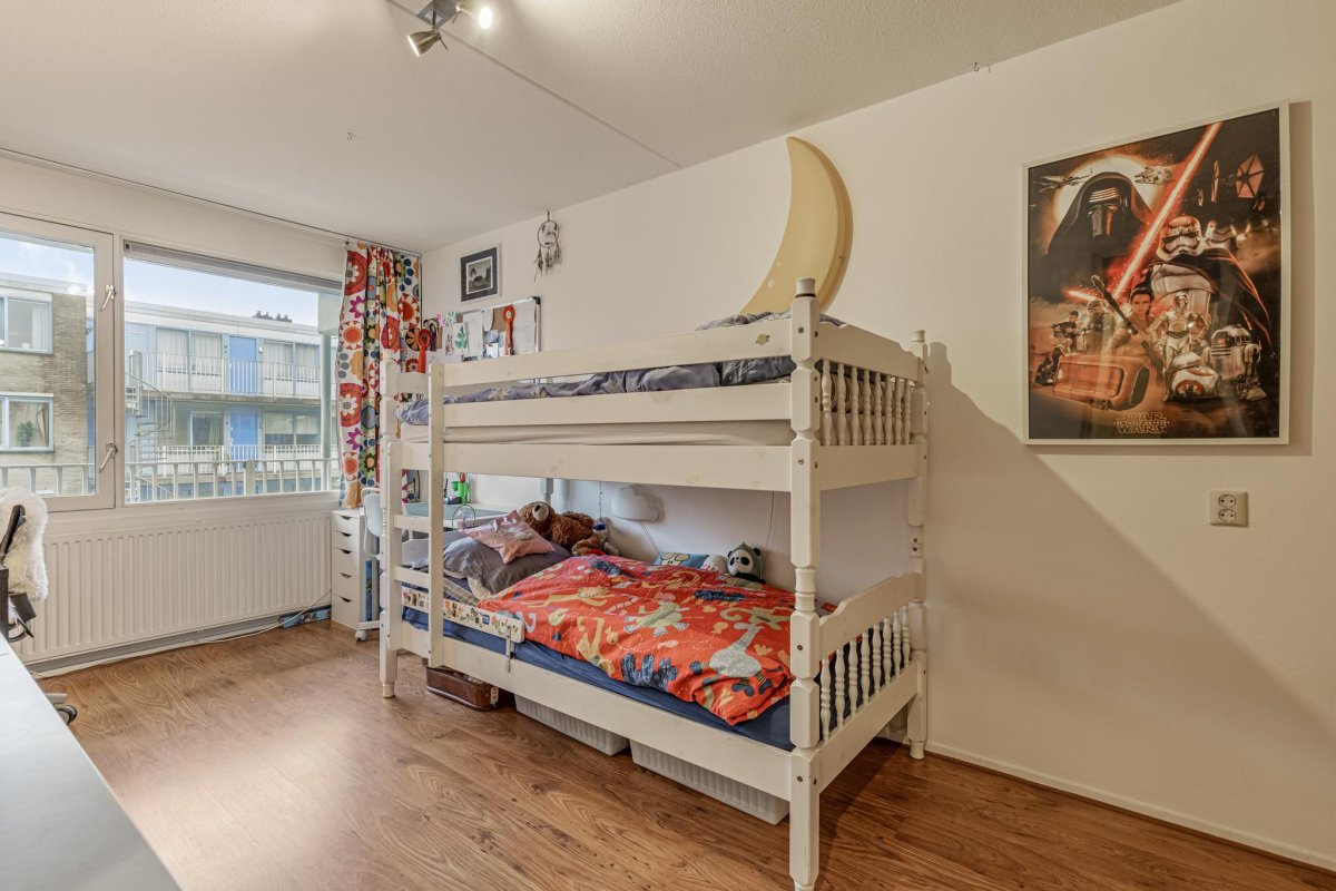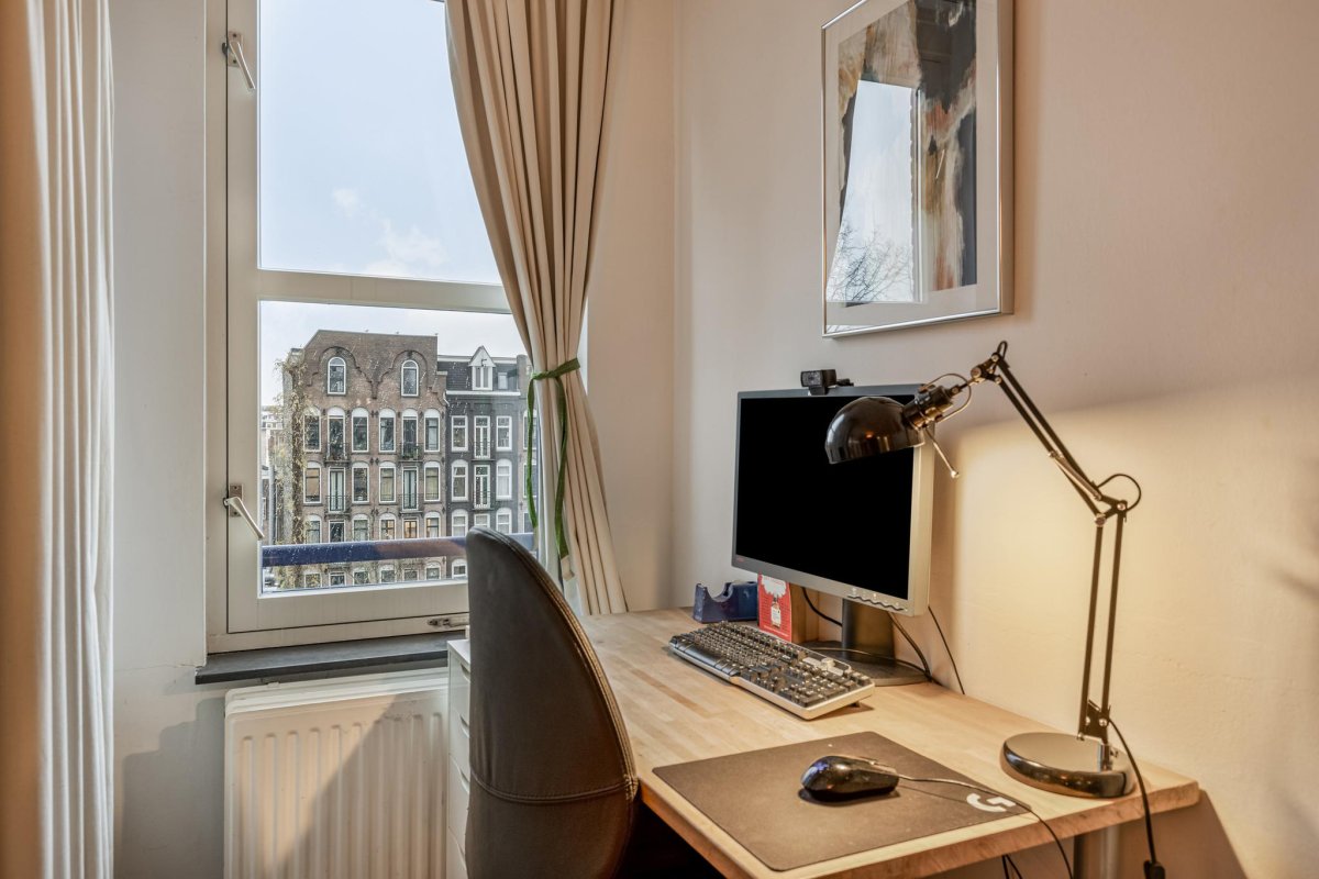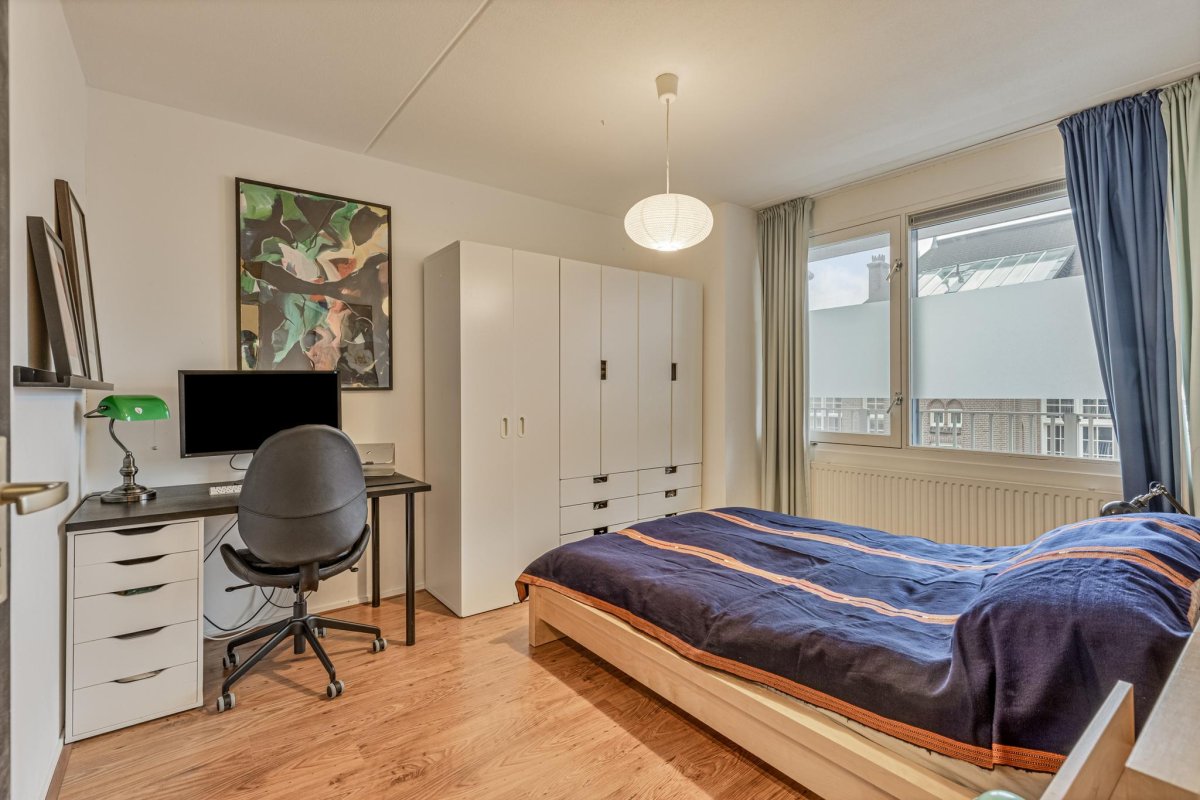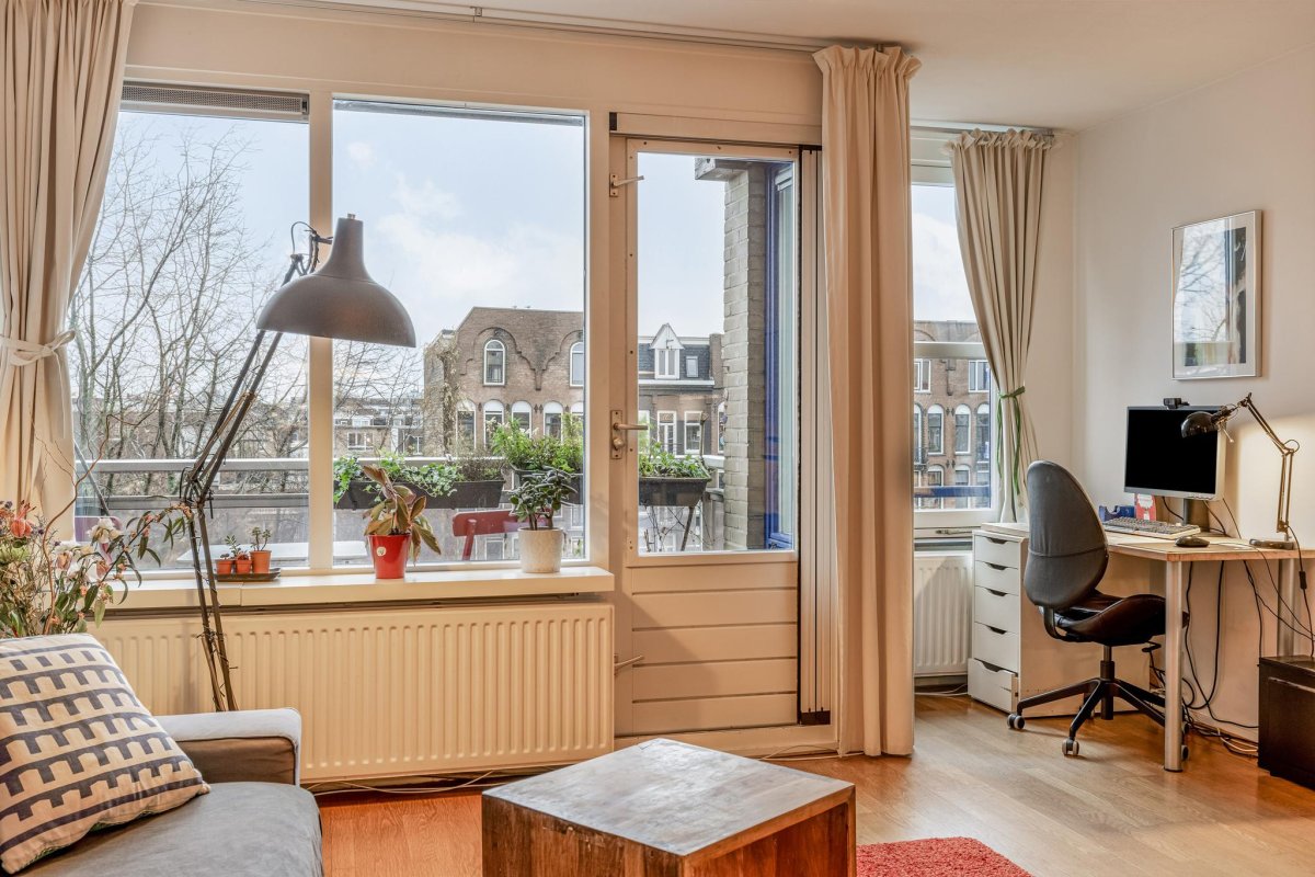 Located in the popular Amsterdam area Helmersbuurt, this comfortable fourth floor apartment comprises two large bedrooms, a bathroom and an open plan living room with kitchen, leading to a charming outdoor balcony with splendid view over a channel, the Jacob van Lennepkanaal. Situated in Amsterdam Oud West with easy access to motorway A10 and excellent public transport links to Amsterdam center, the Zuidas and Schiphol. The bustling area offers you all conveniences of the city such as restaurants, bars, shops and boutiques. Yet with only a few steps you enter the tranquility of the Vondelpark. The Museum Quarter is also within easy reach.