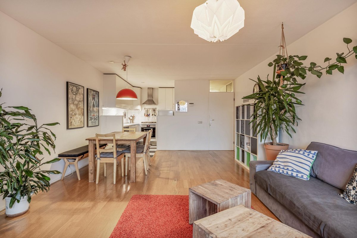 Built in 1990 Located on own ground Energy label A Spacious apartment of 77m2 (NEN2589 report available) Private storage in the basement Service costs € 149,02 monthly Balcony with splendid view over channel Communal courtyard garden and covered bicycle storage With elevator Healthy and professional owners’ association