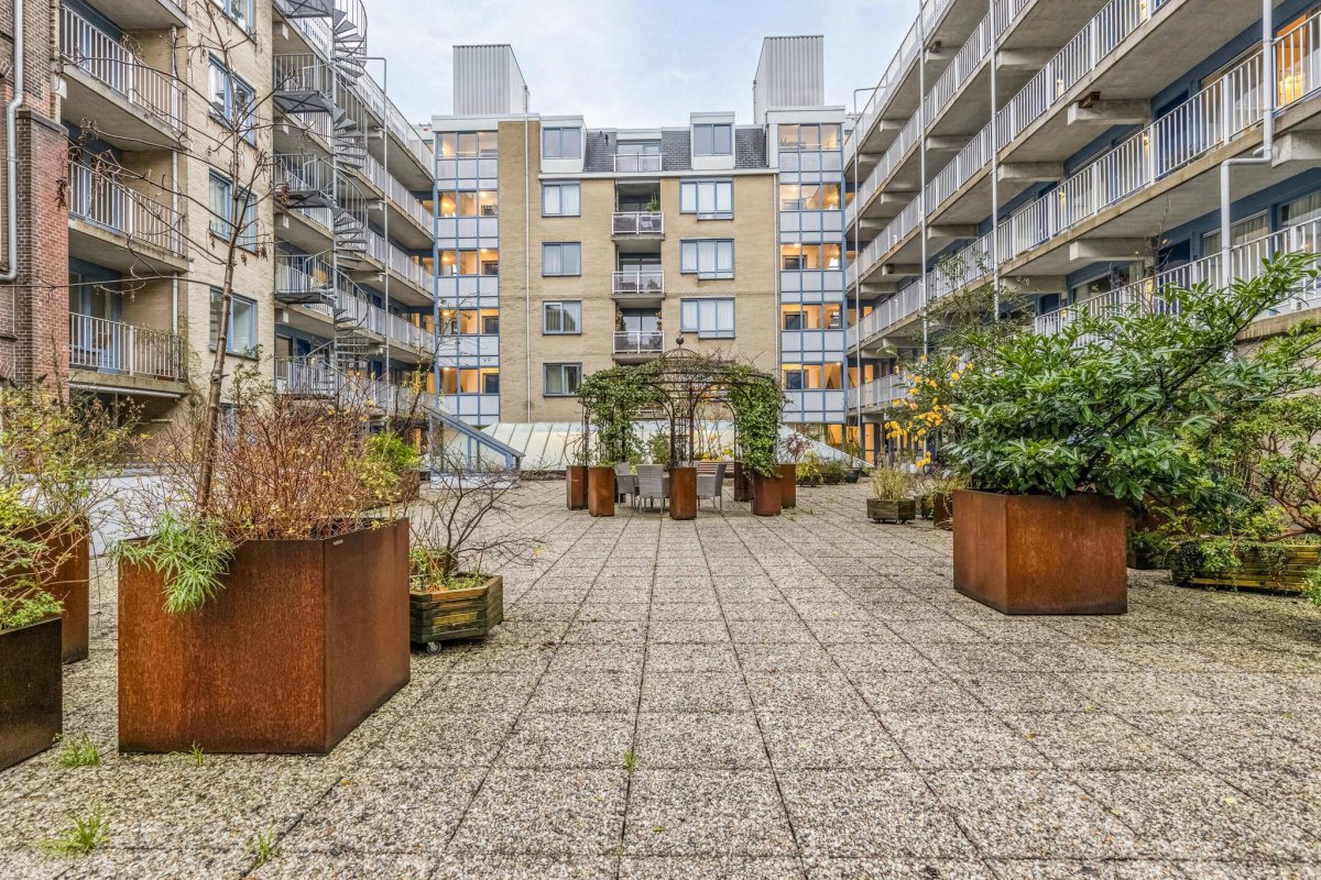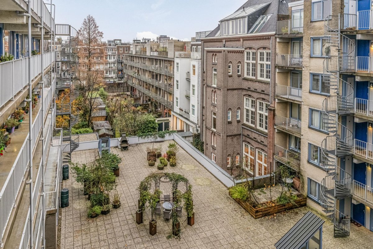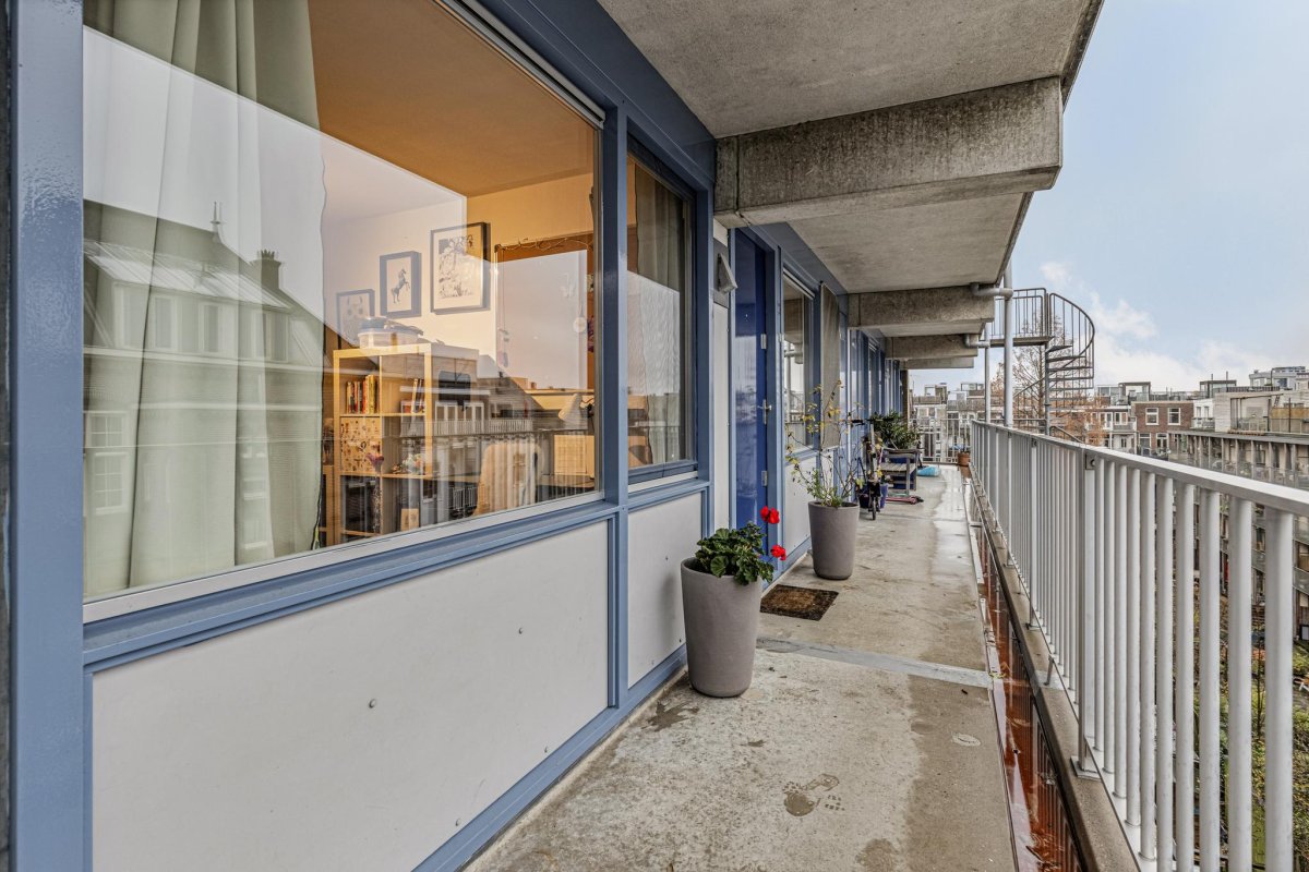 Via de gemeenschappelijke hal neemt u de lift of de trap naar de 4de verdieping. Via de galerij komt u bij de voordeur van de woning. De hal biedt toegang tot de ruime woonkamer met open keuken, de 2 ruime slaapkamers, de badkamer en het separaat toilet. De woonkamer met half overdekt balkon ligt aan de Jacob van Lennepkade en heeft daardoor een prachtig uitzicht over de typisch Amsterdamse gracht (het Jacob van Lennepkanaal). De open keuken is voorzien van een 5-pits gaskookplaat, een oven, een vaatwasser en een vrijstaande koelvriescombinatie. De badkamer is voorzien van een ligbad, een wastafel en de aansluiting voor de wasmachine. Vanuit de galerij kijkt u uit op de prachtig aangelegde terrastuin met barbecue en, in de zomer, ligbedden.